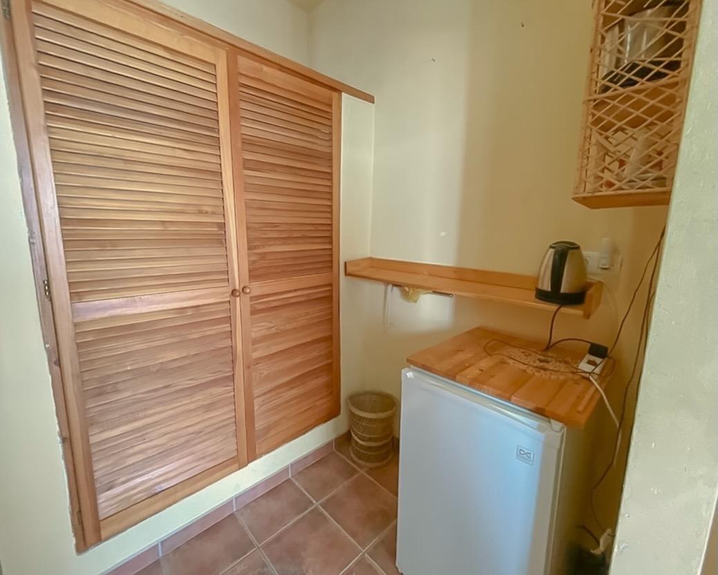 The next level hosts a comfortable bedroom with a built-in wardrobe and additional storage space, as well as a good sized en-suite bathroom with shower and bidet.