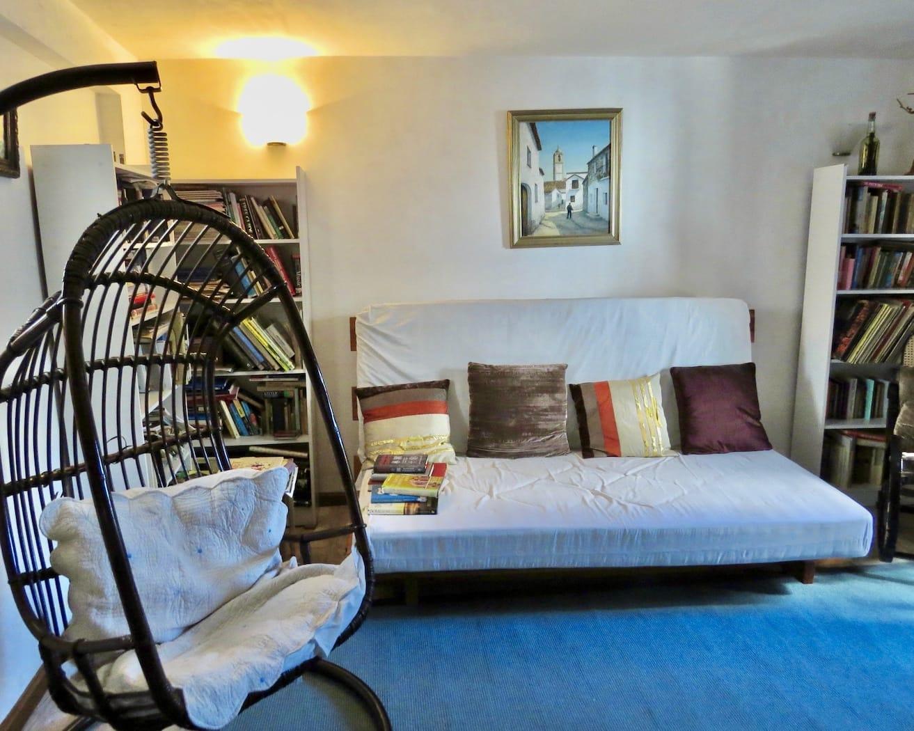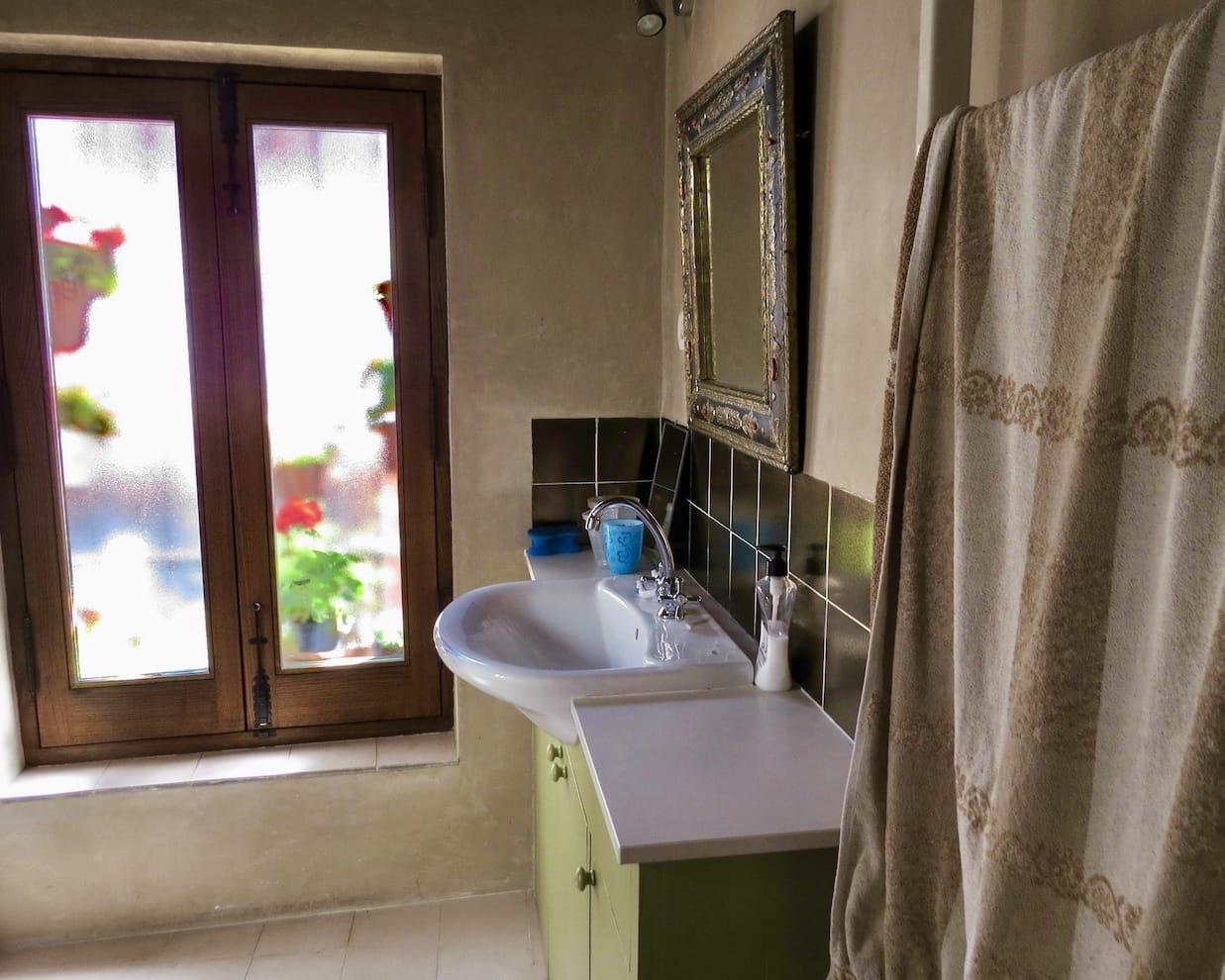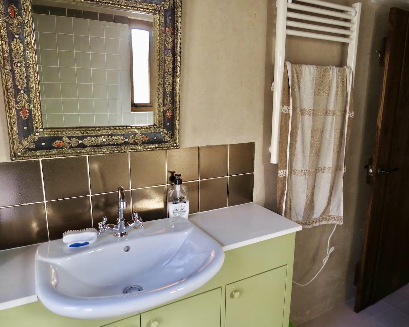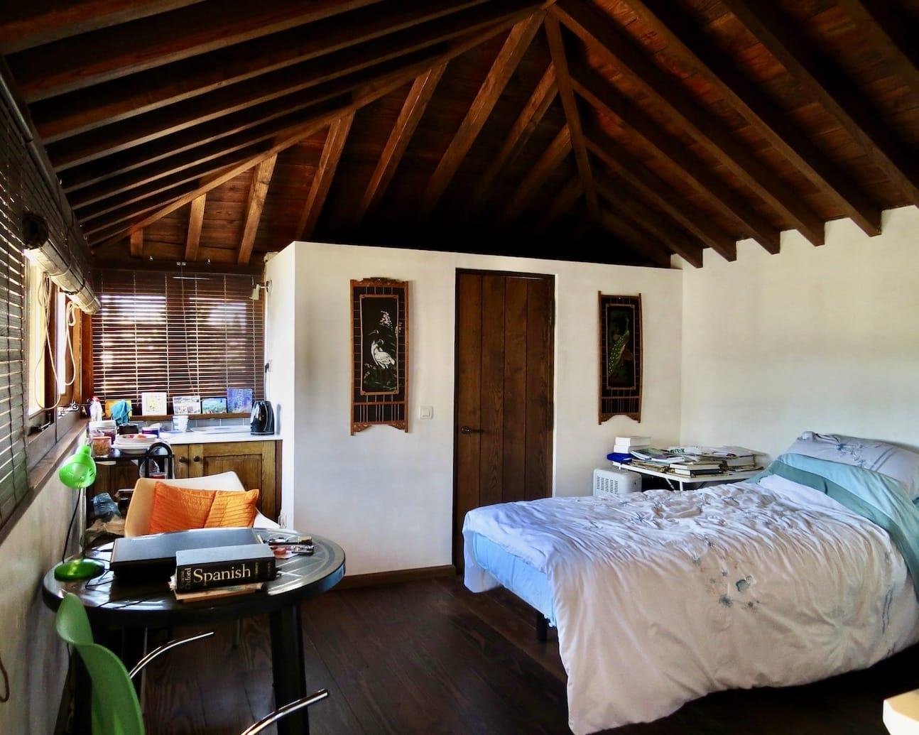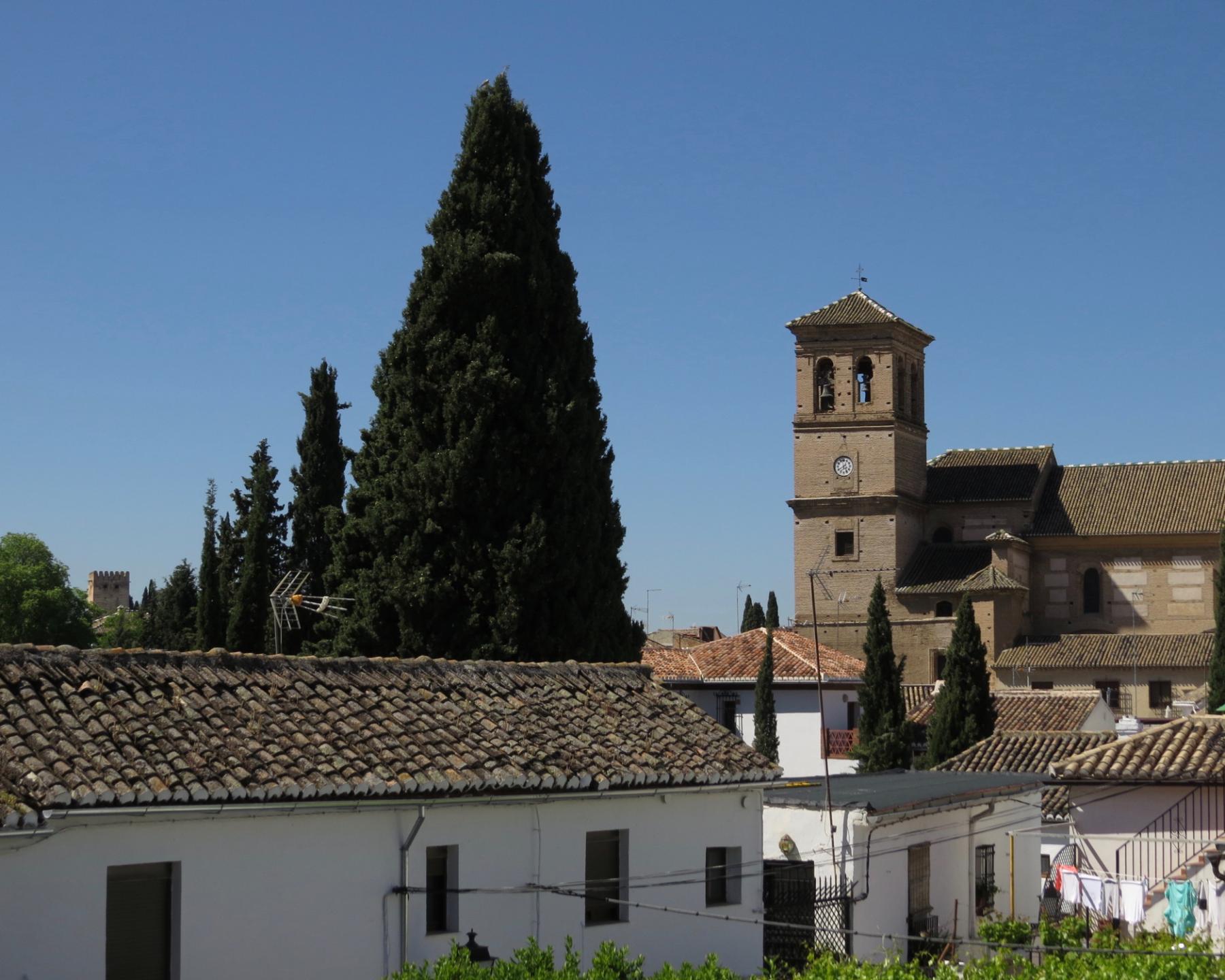 Above this on the second floor is a large bedroom with en-suite bathroom. This room, and the gallery that gives access to it, look straight across at the Alhambra.