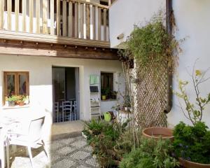 On the ground floor there is: an entrance hall, a lounge with wood burner; a dining area and a kitchen, all of which have direct access to the internal patio. There is also a bathroom, a toilet and an outside space for storage.
