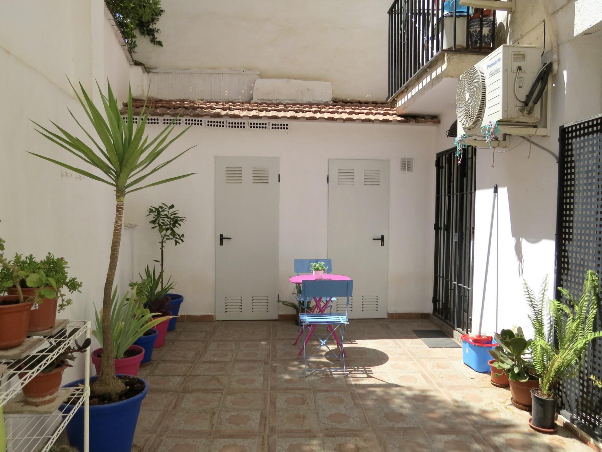 On the ground floor there is a communal garden/patio with plants and a seating area, as well as space to hang laundry. The property also has a storage area accessed from the garden/patio.