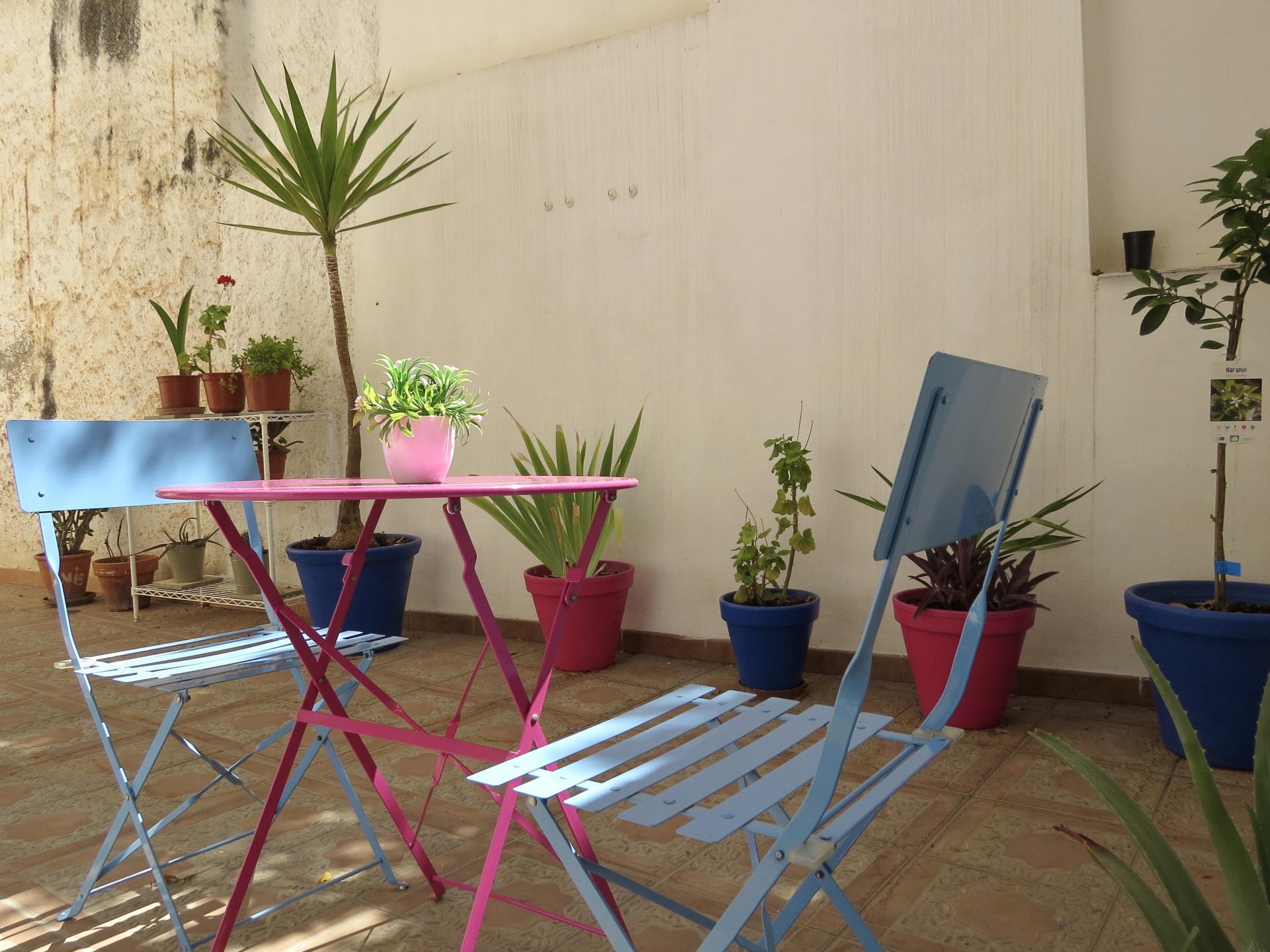 On the ground floor there is a communal garden/patio with plants and a seating area, as well as space to hang laundry. The property also has a storage area accessed from the garden/patio.