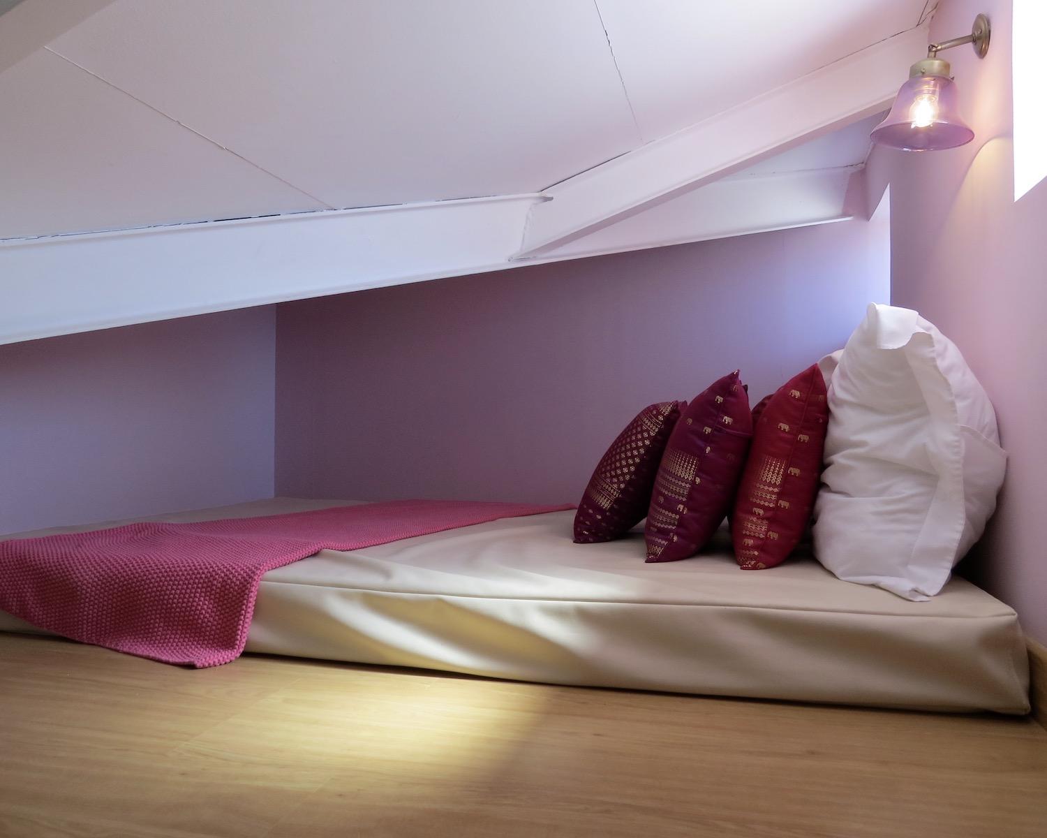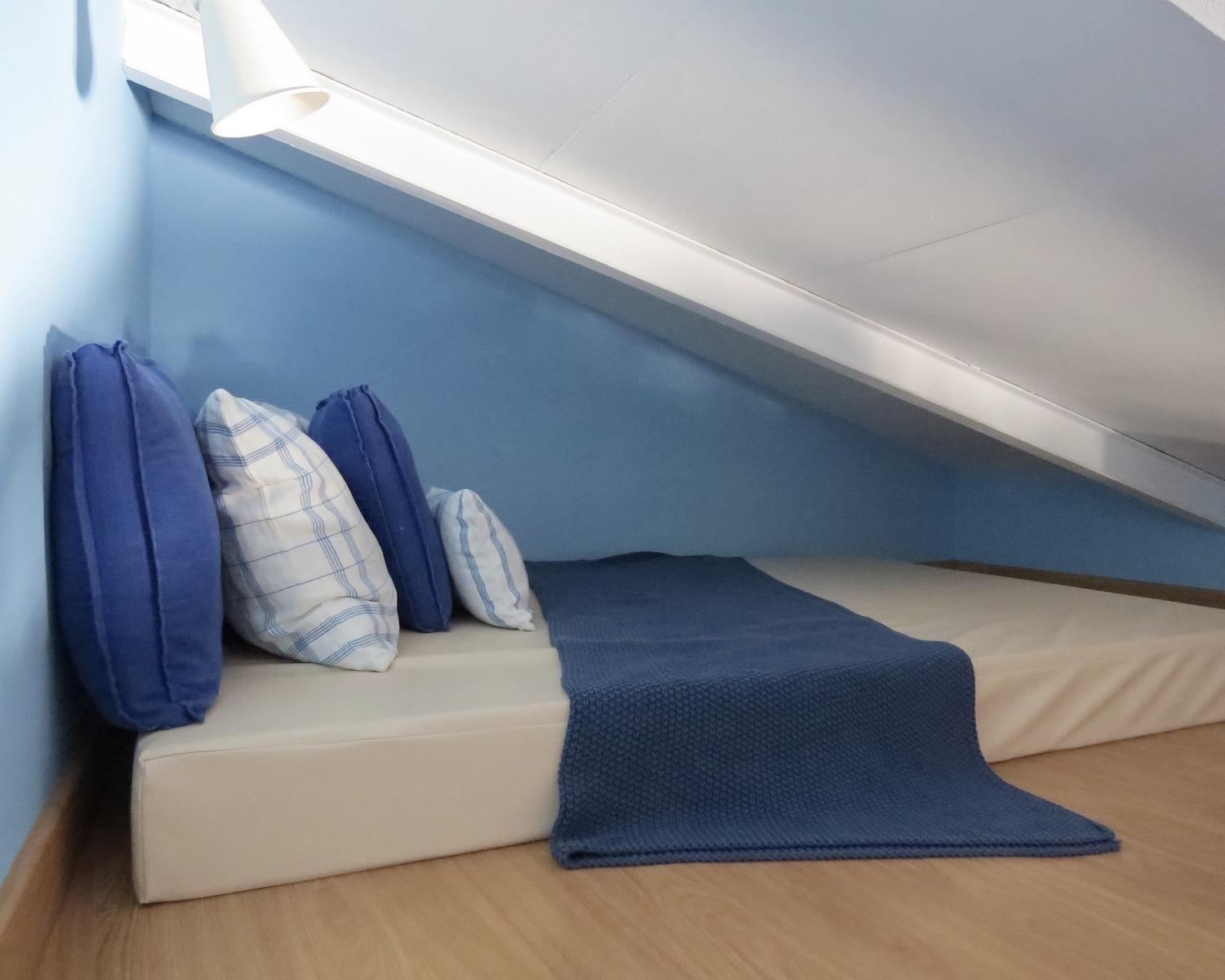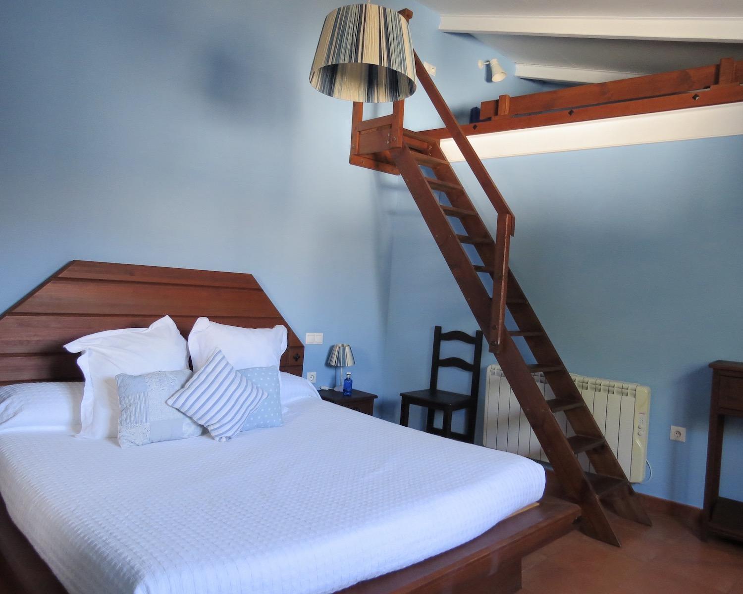 One bedroom features a mezzanine sleeping level