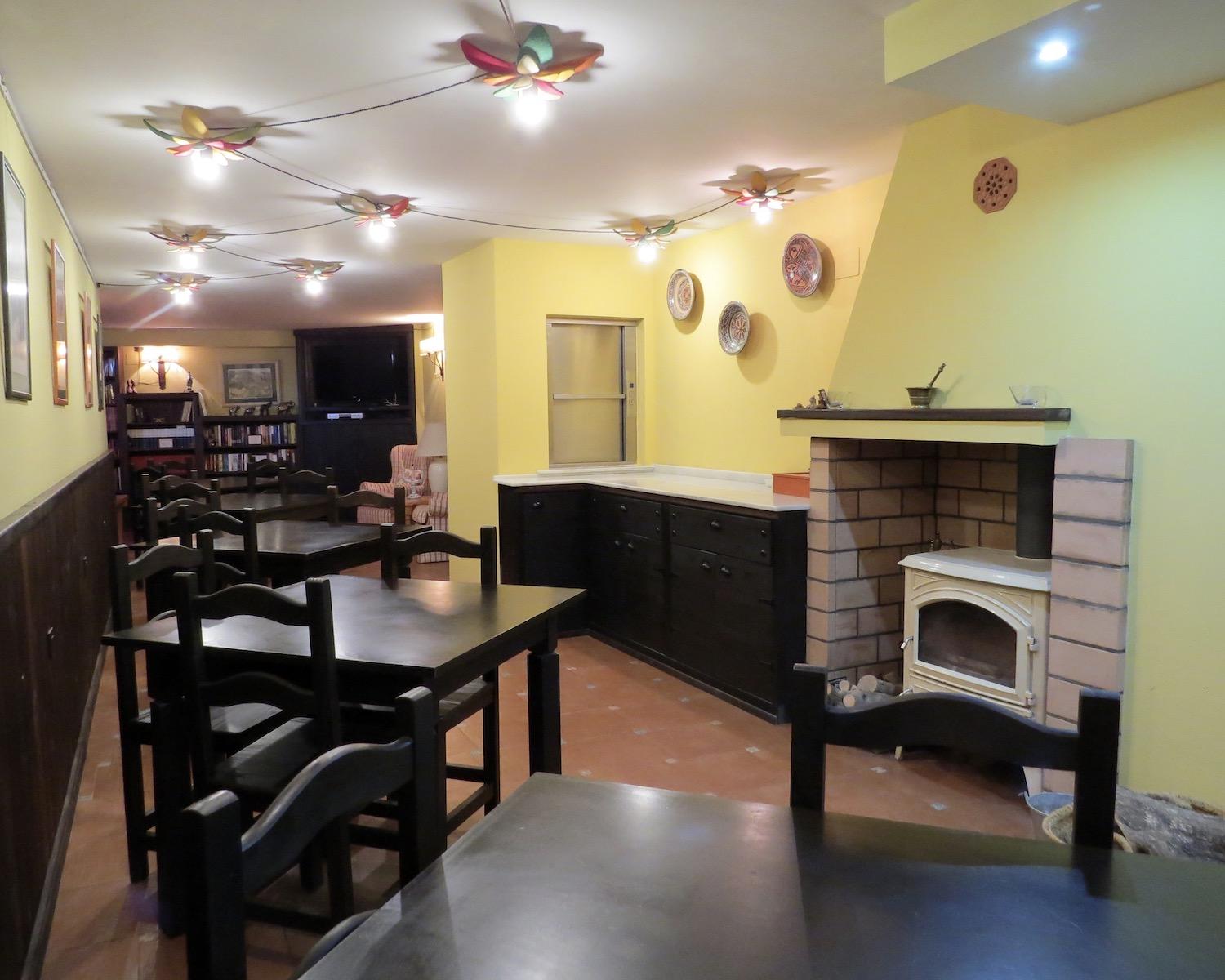 From the ground floor, stairs lead down to the lower-ground level, where there is a spacious bar, dining hall and lounge area with fireplace — ideal for winter use. This level also includes a large laundry and provisions room, as well as additional storage. Thanks to this well-designed layout, the business operates comfortably all year round.