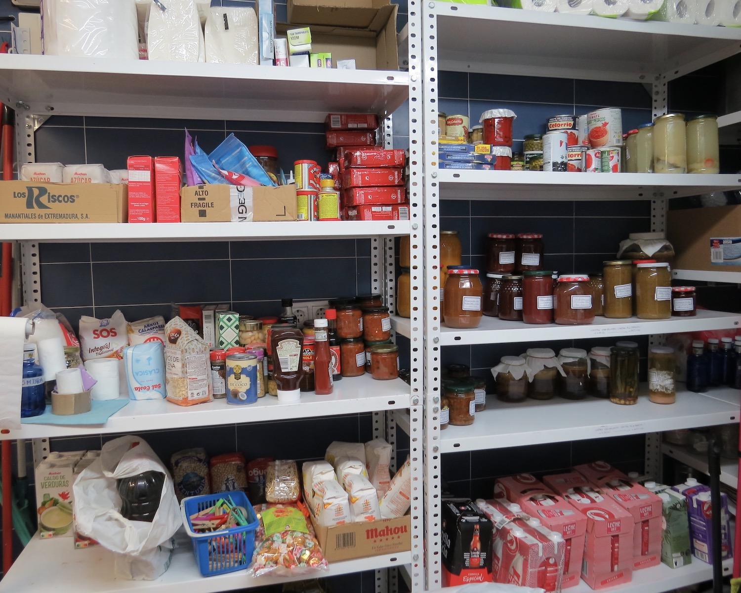 To the left of the kitchen: