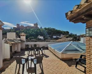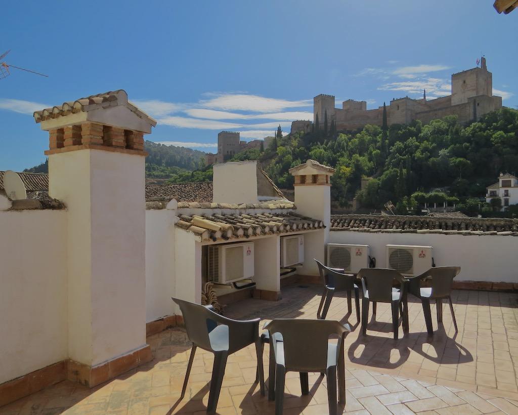 On the third floor there is a glass fronted seating area with spectacular views of the Alhambra. This room gives access to the roof terrace with 270º views of the Alhambra, the Albayzín and the city.