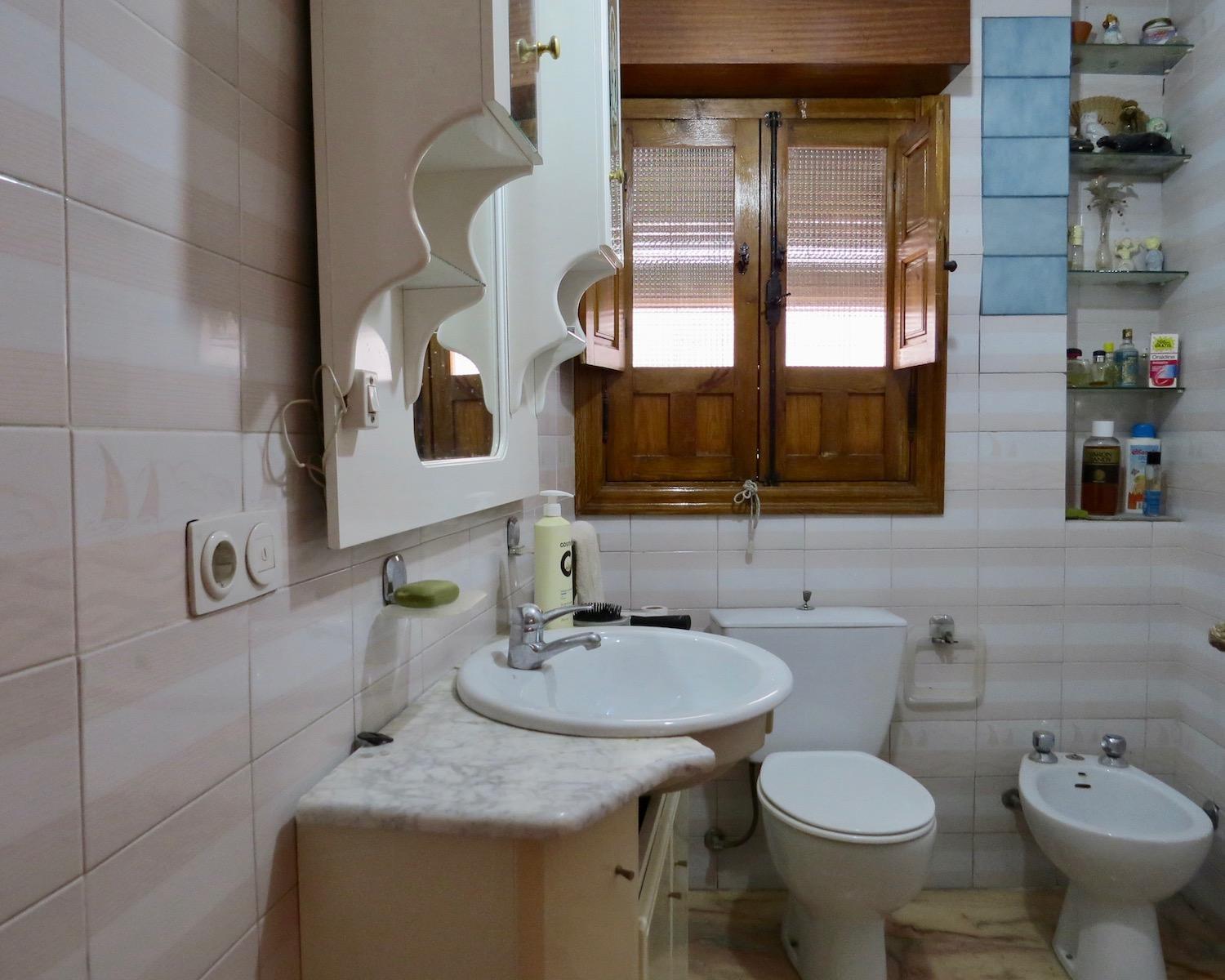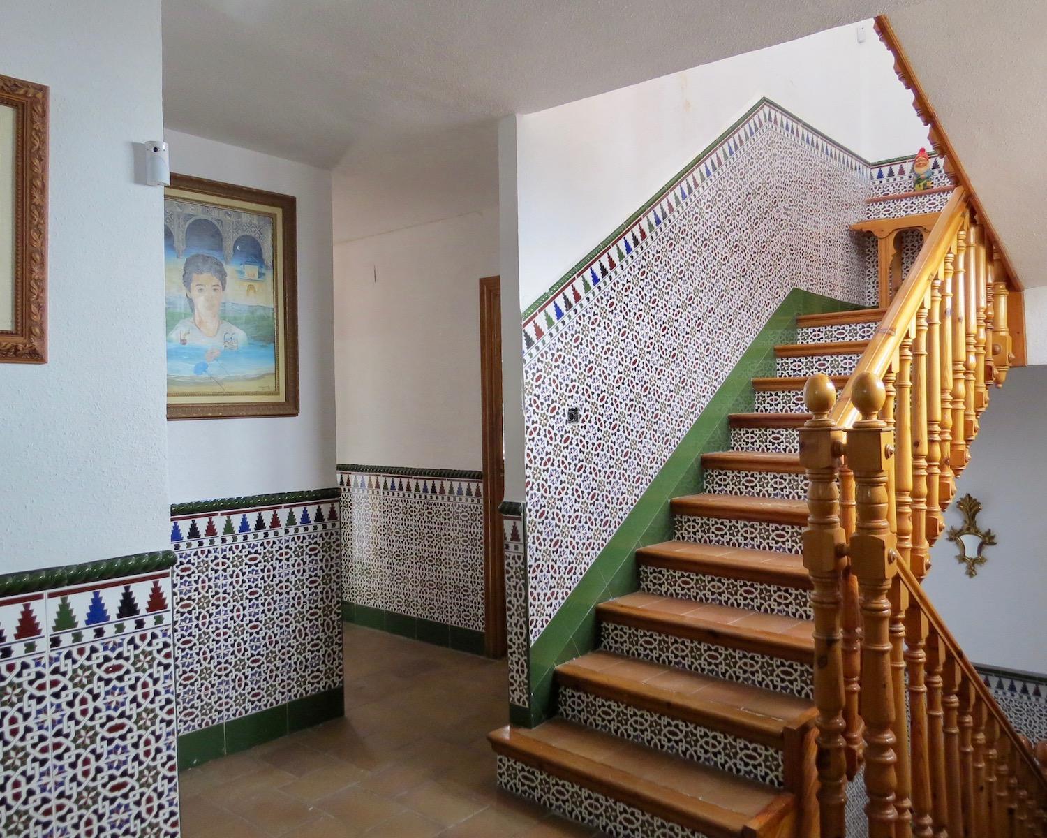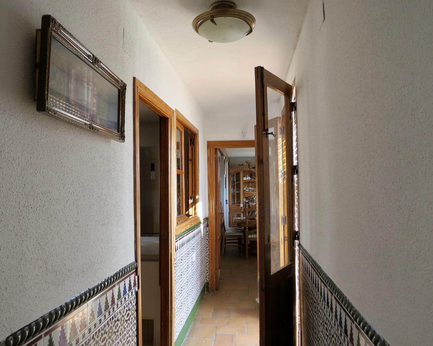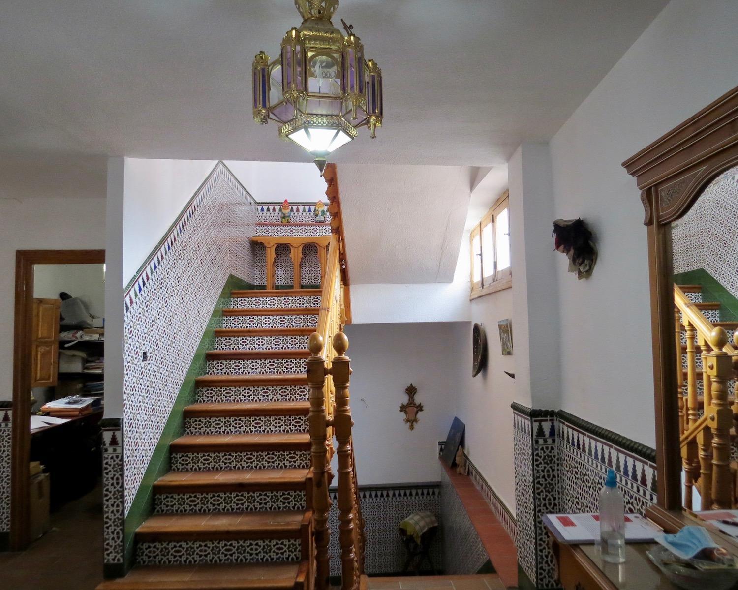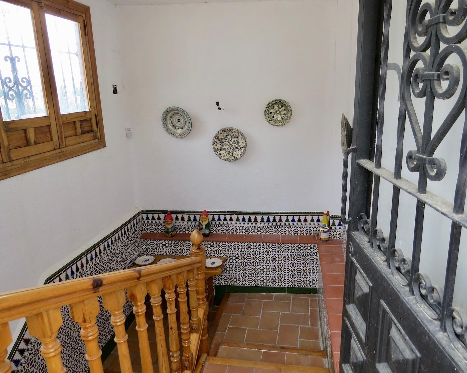 Coming back to the entrance hall, there are stairs (with typically Andalusian tiles on the walls) leading down to four bedrooms. three of which are ensuite with either a bath or shower or both. The second bedroom gives access to an interior patio, currently enjoying a number of thriving plants, while the third bedroom enjoys the light and view of the patio from an interior bedroom window. Two of the four bedrooms have built-in cupboards. The last bedroom, the master bedroom, has a view of the Alhambra from the bedside window.