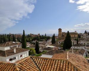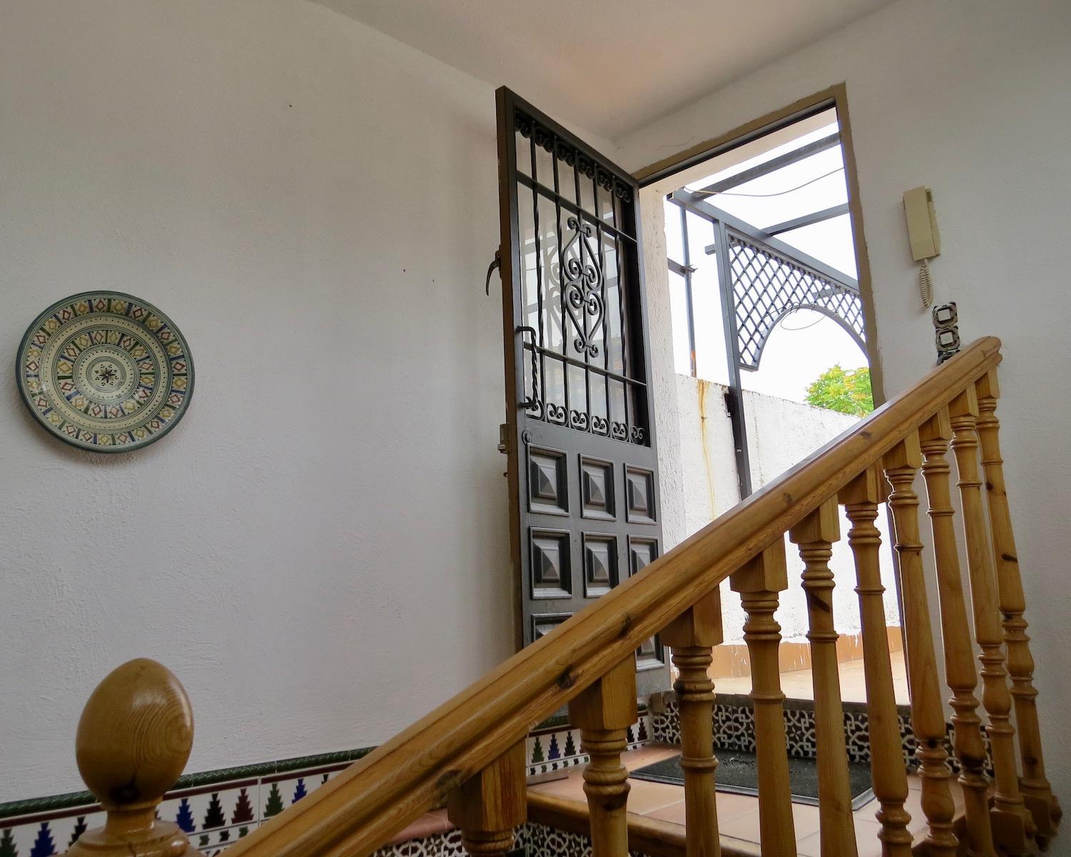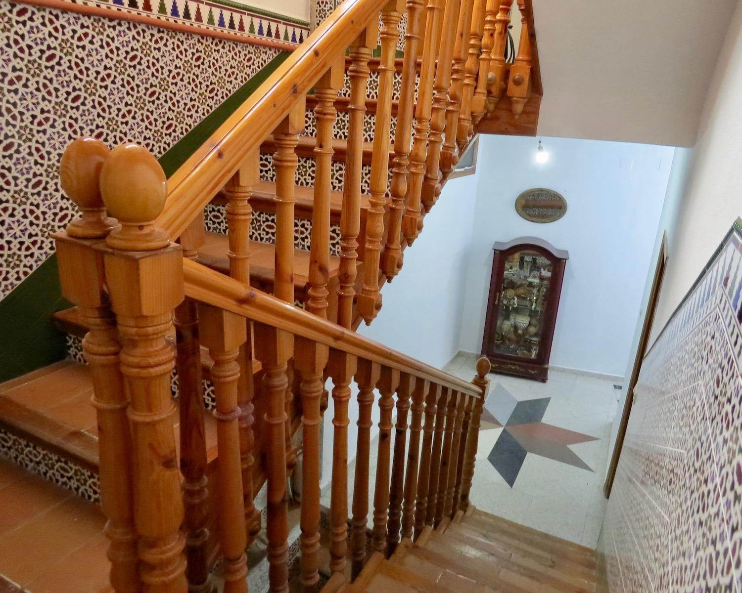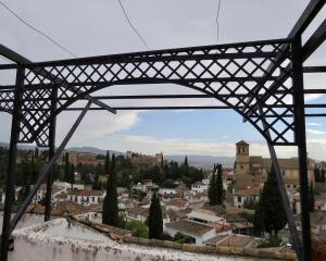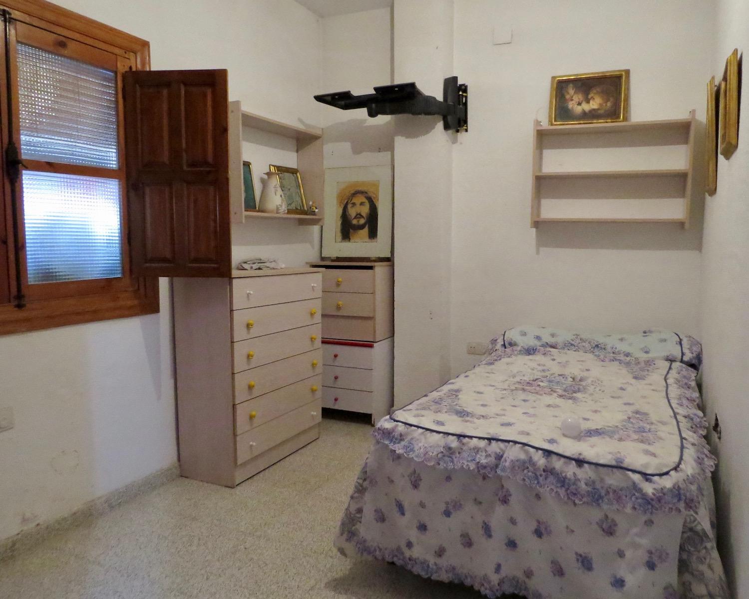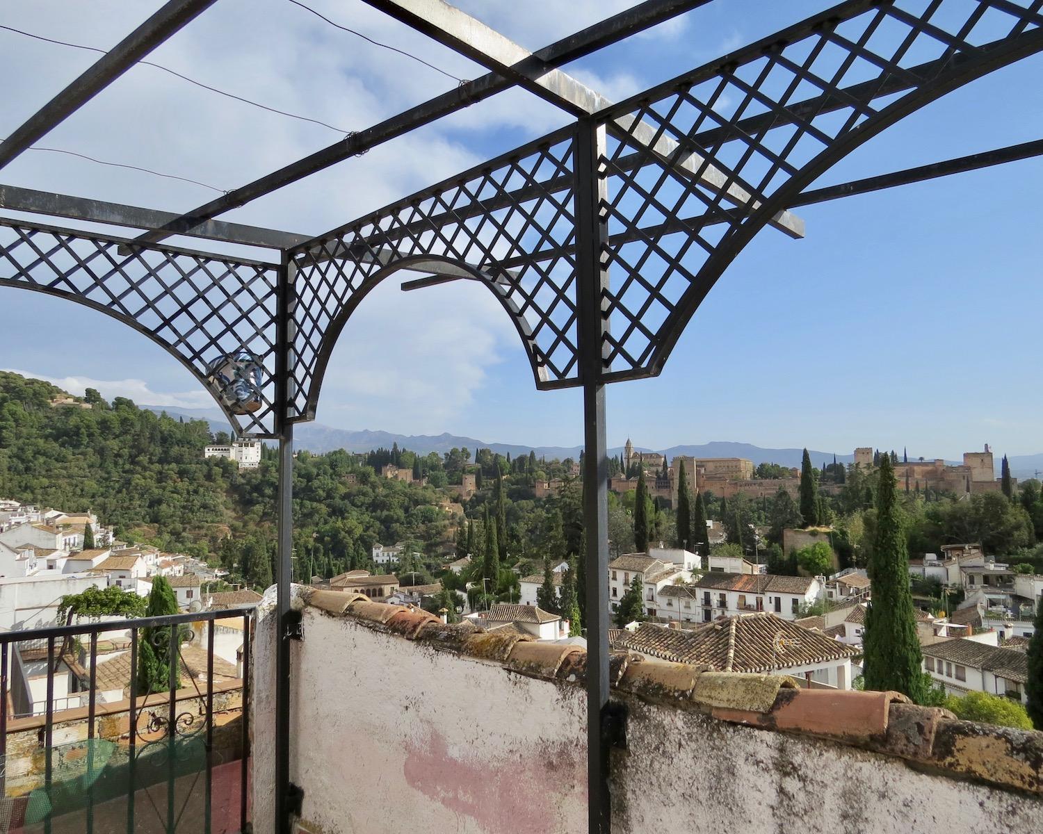 Coming back to the entrance hall, there are stairs (with typically Andalusian tiles on the walls) leading down to four bedrooms. three of which are ensuite with either a bath or shower or both. The second bedroom gives access to an interior patio, currently enjoying a number of thriving plants, while the third bedroom enjoys the light and view of the patio from an interior bedroom window. Two of the four bedrooms have built-in cupboards. The last bedroom, the master bedroom, has a view of the Alhambra from the bedside window.