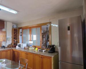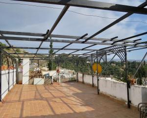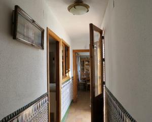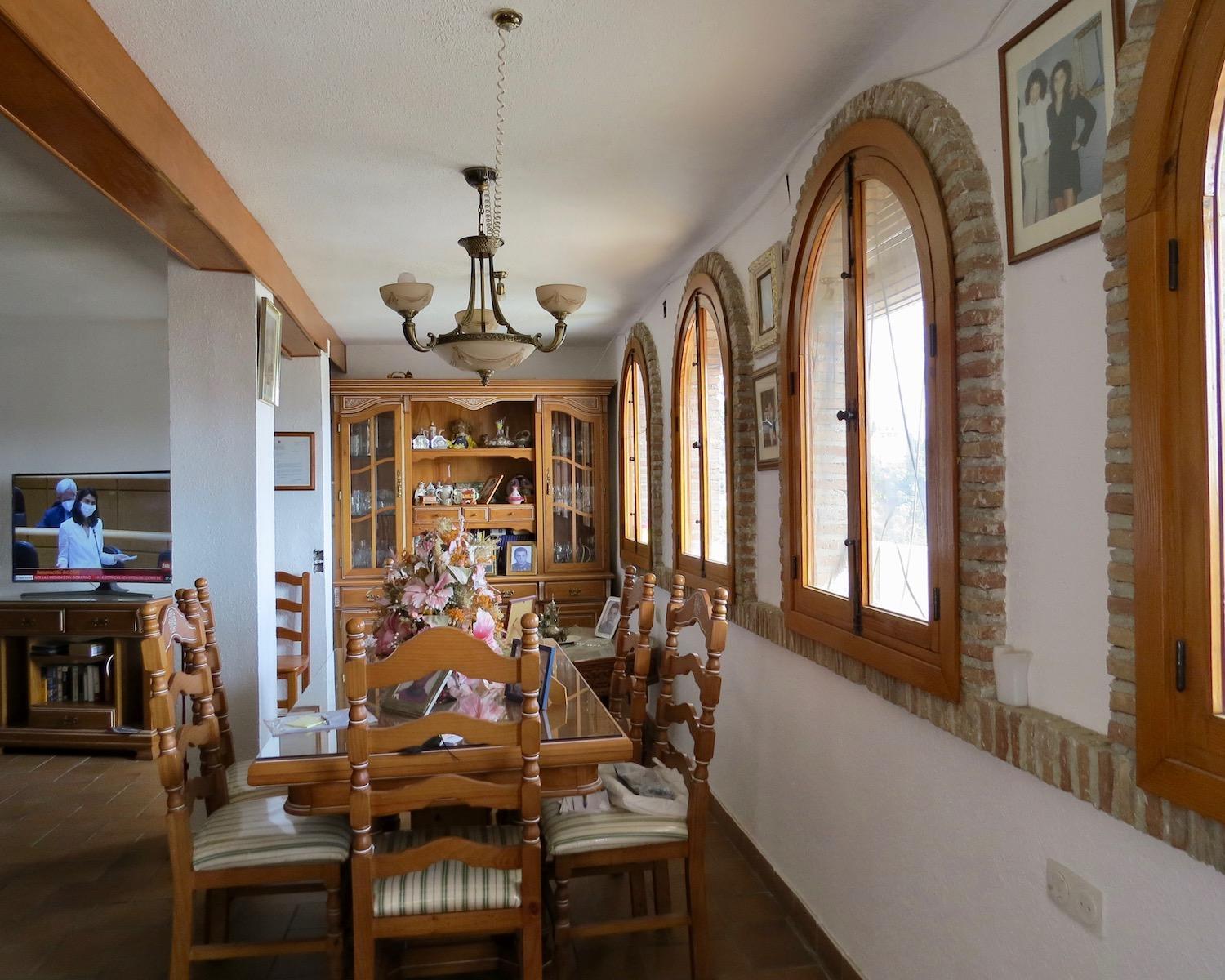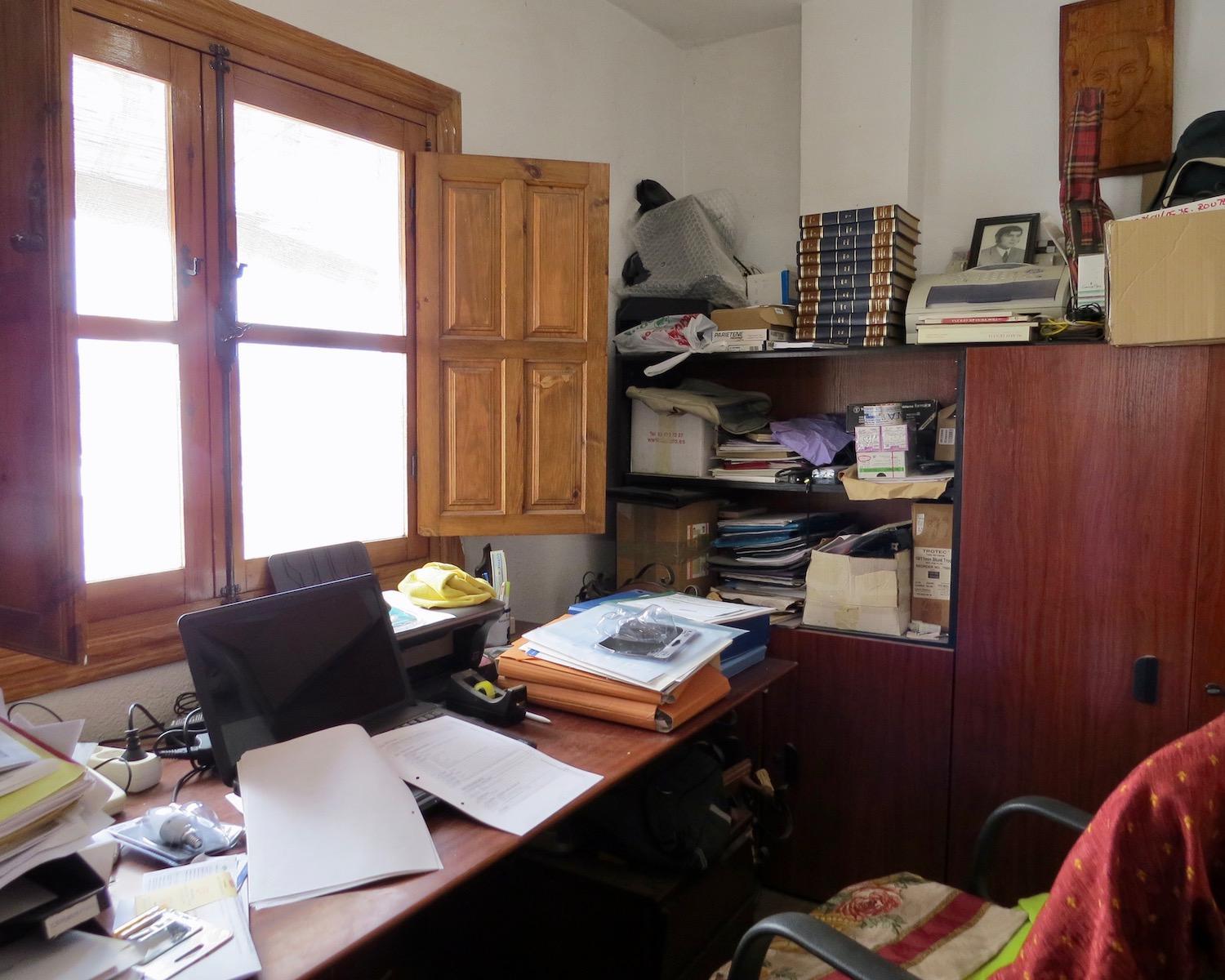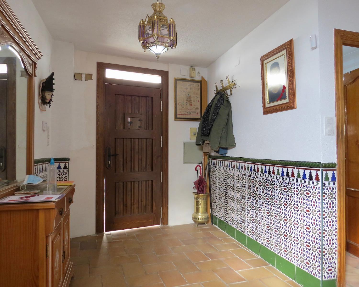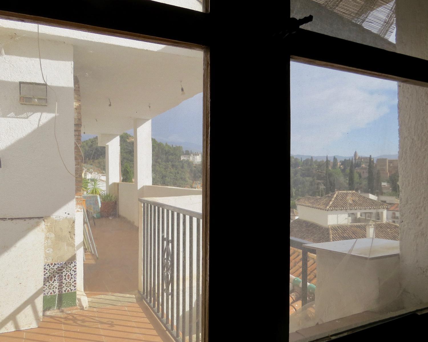 In through the front door you will find a big entrance hall, with a bathroom and study/office (with views of the Alhambra) off to the left, which leads onto a passage, with a large, fully-fitted kitchen off to the left, a long terrace with amazing views of the Alhambra and Albayzin to the right and, at the end of the passage, an open living room/dining room with a lovely, big open fireplace, big windows allowing a view in and out of the kitchen and five exterior windows offering lots of light, four of which enjoy views of the Alhambra and Albayzin.