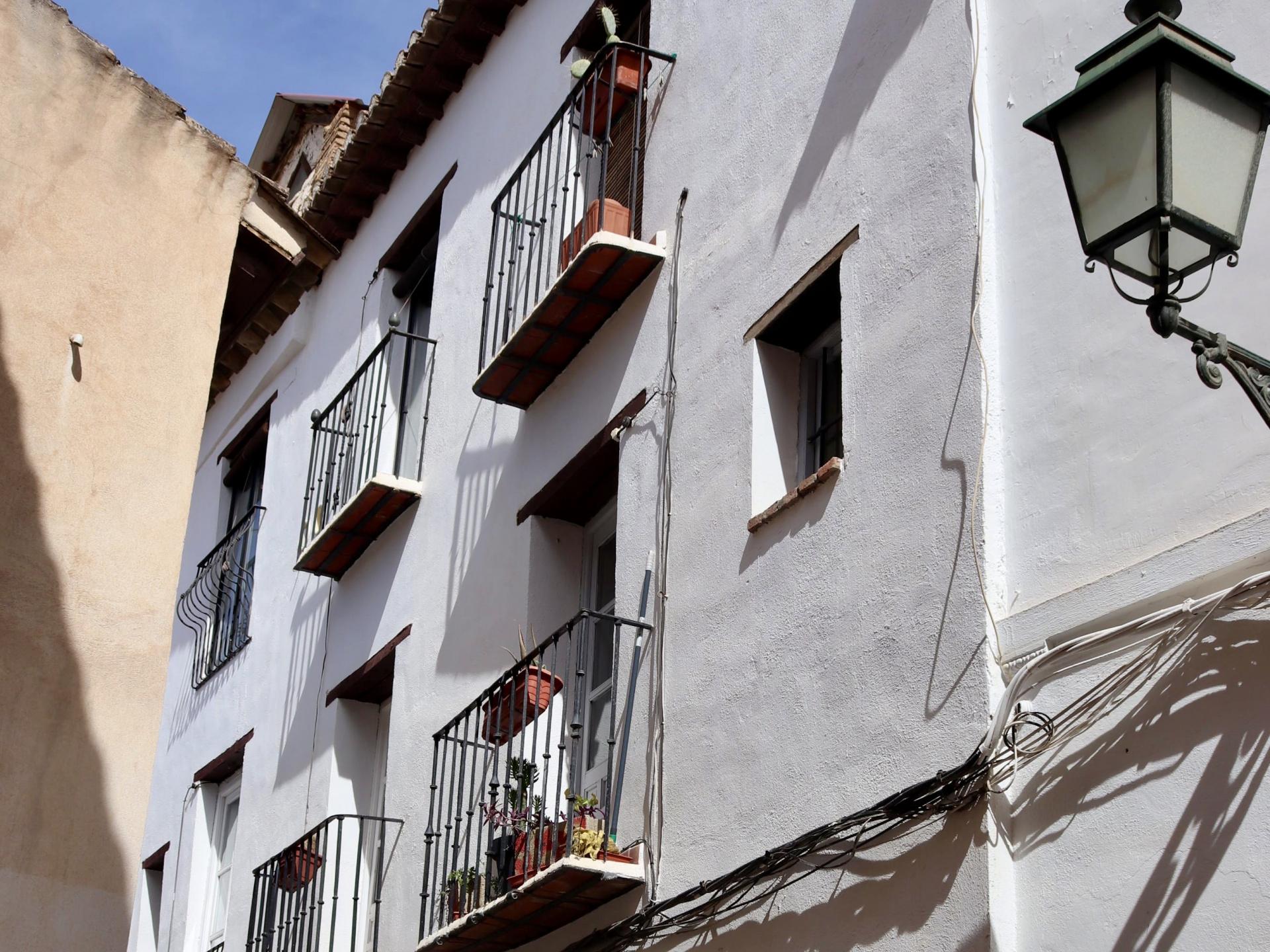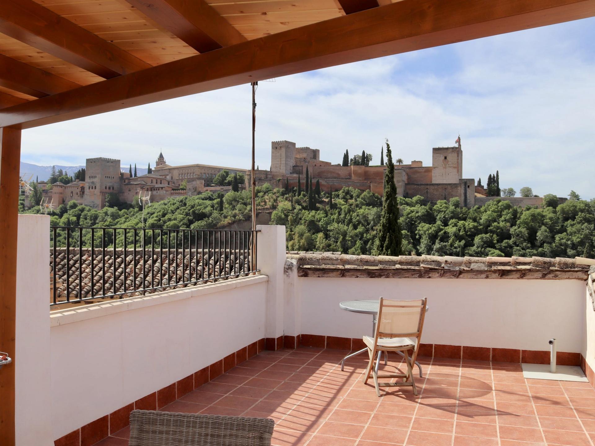 A first floor apartment in the middle Albayzin in a renovated traditional building of six apartments, sharing an entry courtyard and a fantastic roof terrace with barbecue and spectacular views of the Alhambra, which is accessed from the floor above. The terrace is shared with five other apartments but theses are not all permanently lived in, so there is often no-one around.
