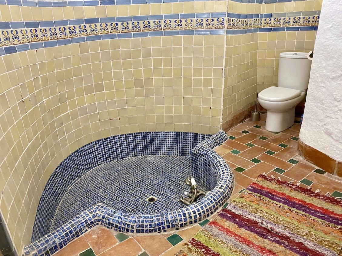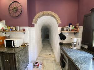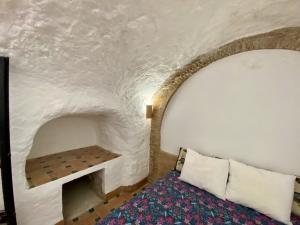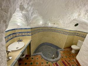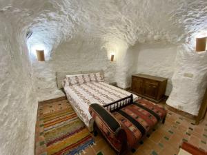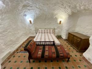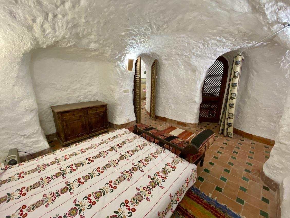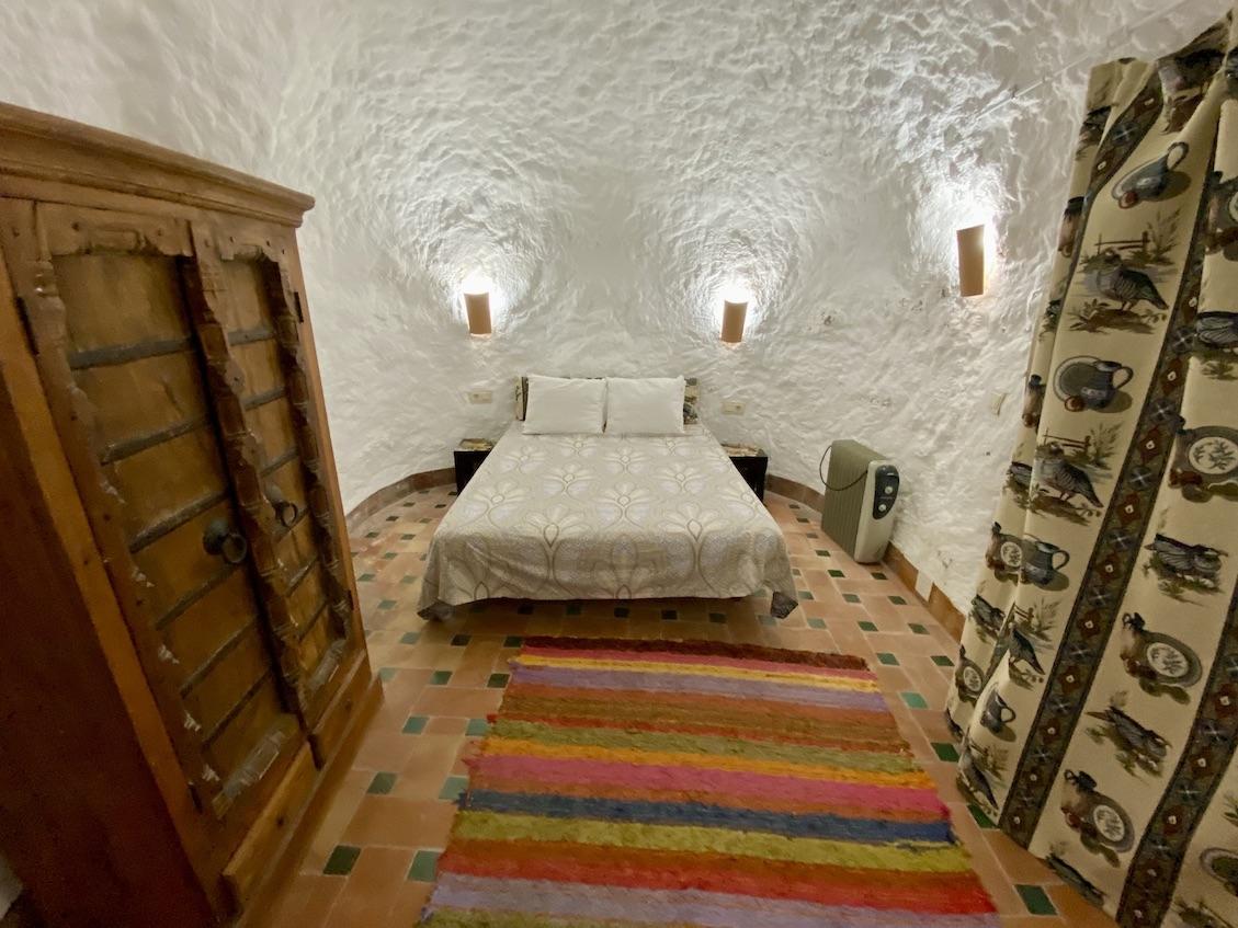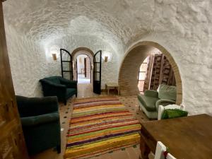 Also located in the patio is a former toilet which now houses a second washing machine and two doors giving access to the hot water tanks. Access to the cave area is also from the patio. Attractive brick arches lead to the lounge, three double bedrooms and a bathroom witha Moorish style sunken tiled bath. A fan with ventilation pipes maintains the caves completely dry at all times. There is no humidity and the caves have no odour associated with damp environments.