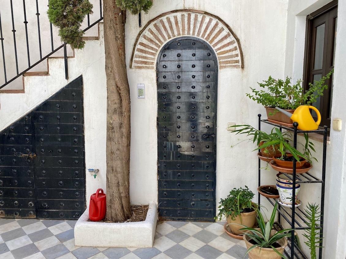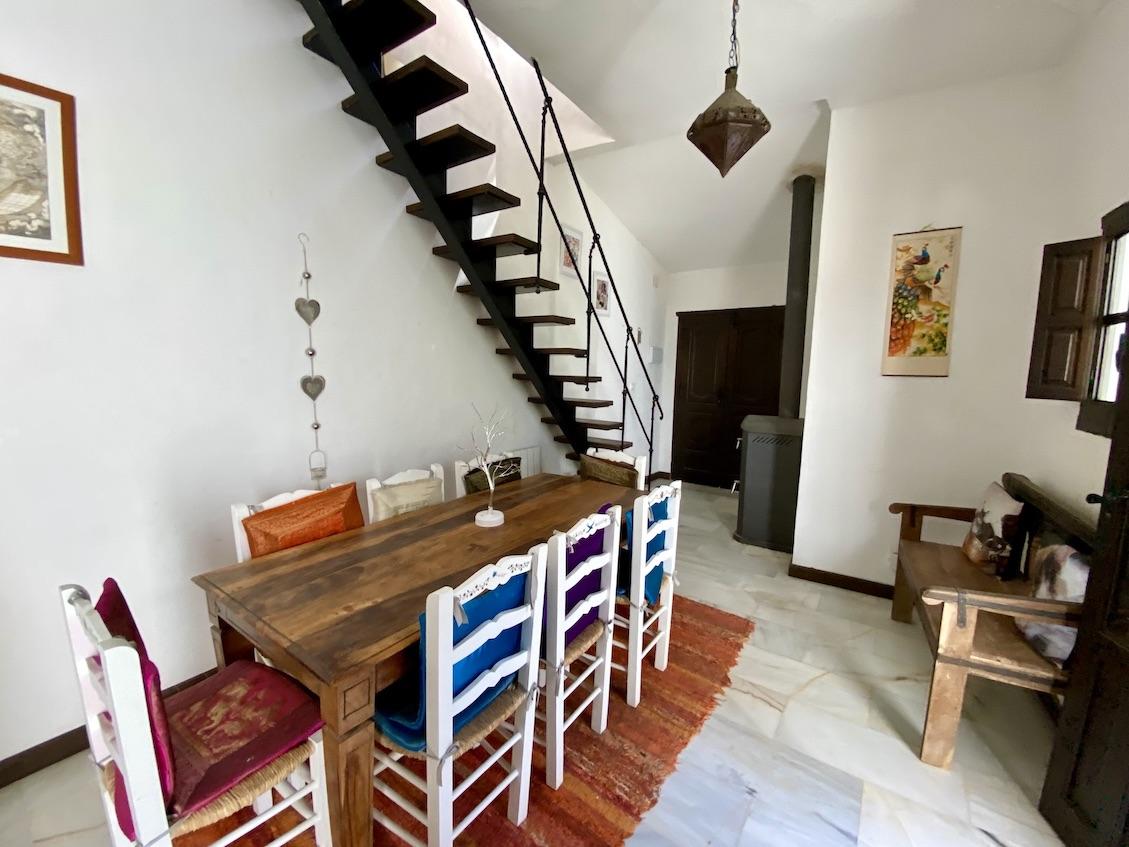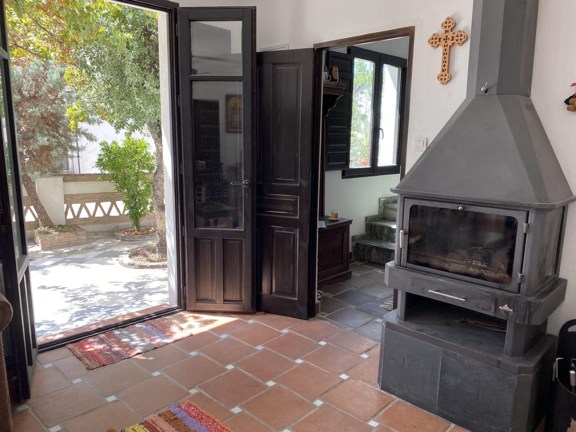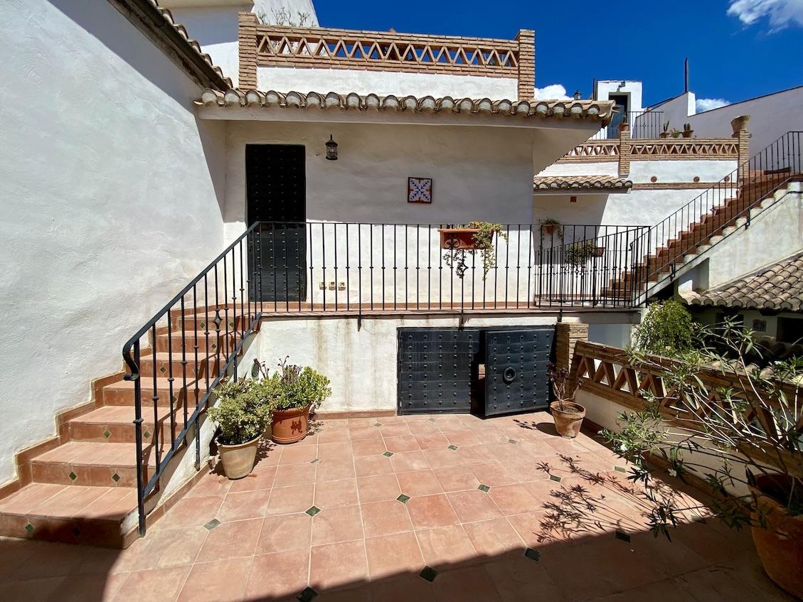 The house, built around a classic Andalusian patio, is arranged across multiple levels. Upon entering from the street, a charming staircase leads to a terrace with two cypress trees, five orange trees, a pomegranate, a small cork oak, an apricot and two vines which provide shade in summer. This terrace, which sits substantially higher than the street below, is spacious and an ideal place to take meals.