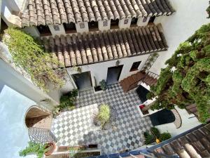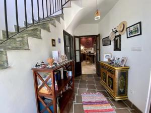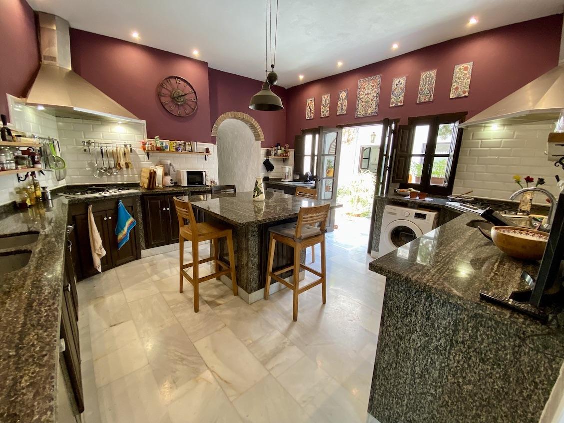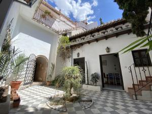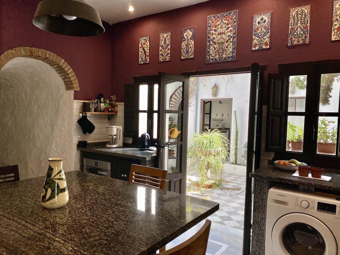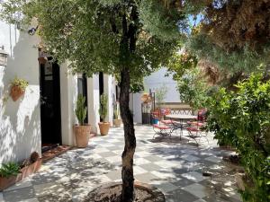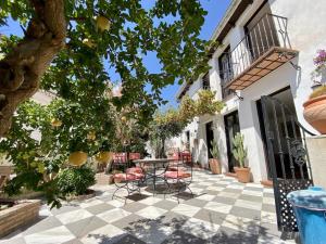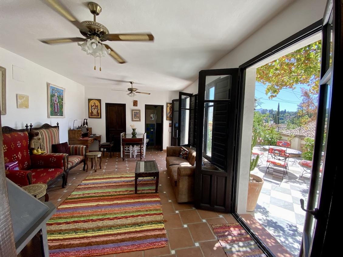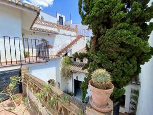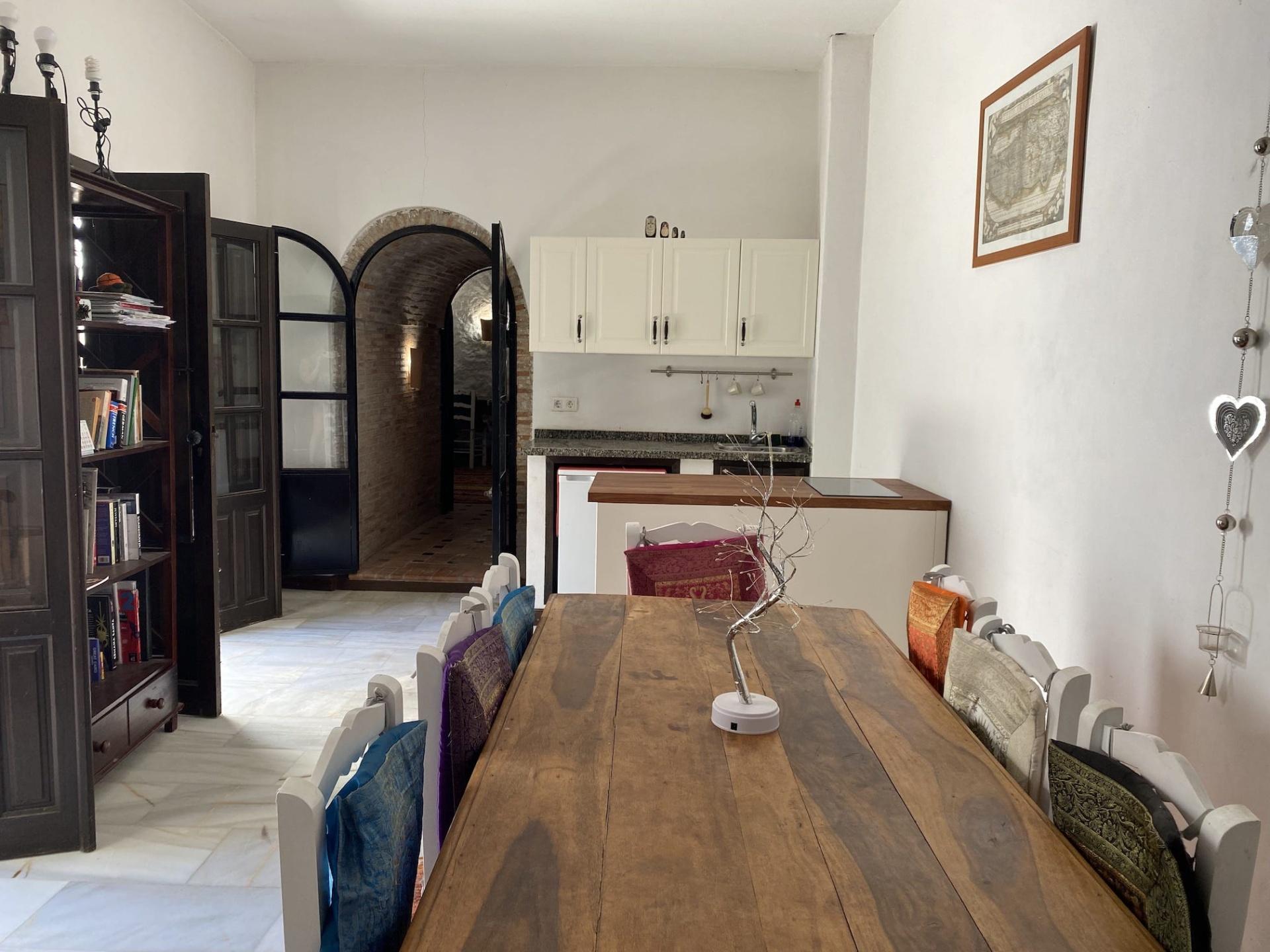 The house, built around a classic Andalusian patio, is arranged across multiple levels. Upon entering from the street, a charming staircase leads to a terrace with two cypress trees, five orange trees, a pomegranate, a small cork oak, an apricot and two vines which provide shade in summer. This terrace, which sits substantially higher than the street below, is spacious and an ideal place to take meals.