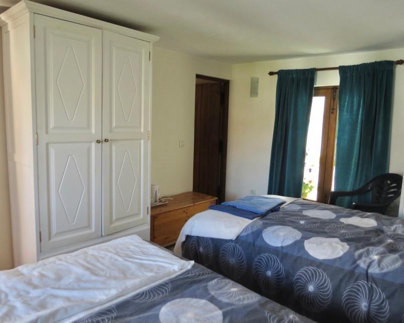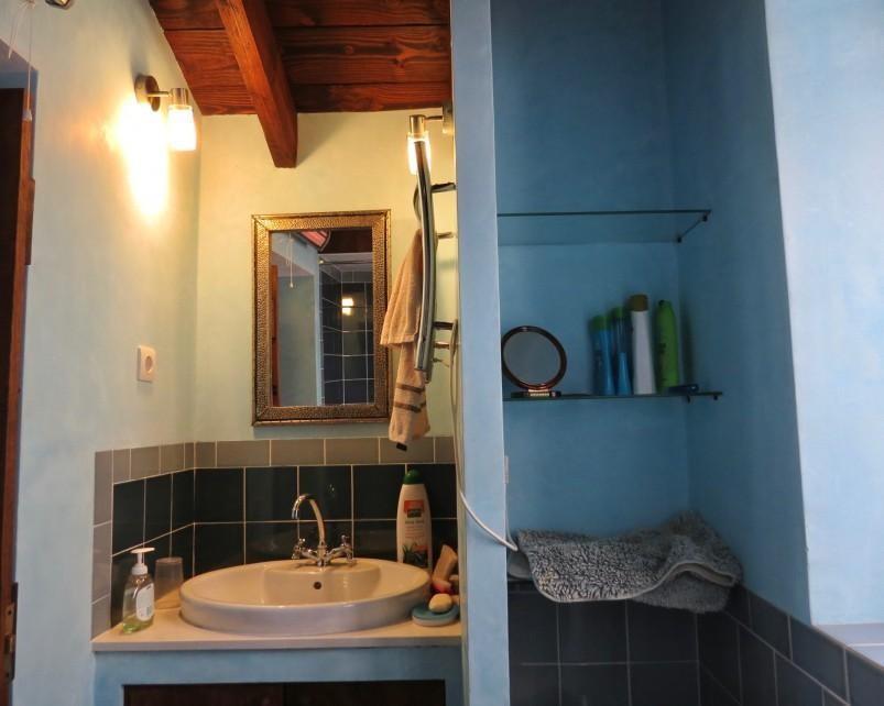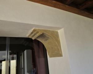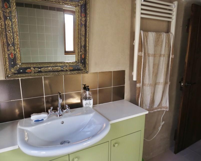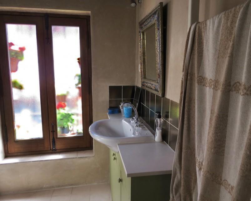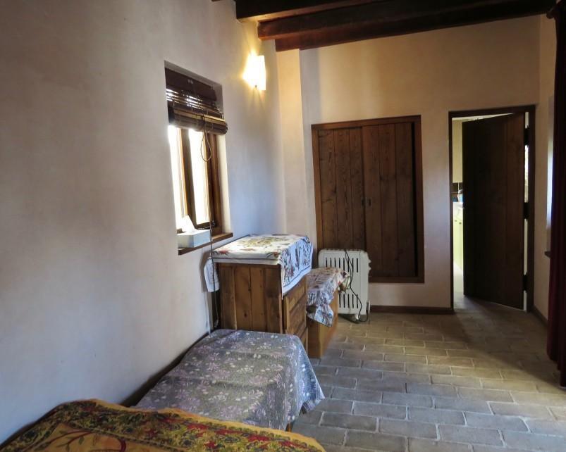 Entrance to the property is through an antique wooden door, which leads to a spacious entrance hall. To your right is a large dining room, which seats up to 15 people. To the end of the dining area is a fully fitted kitchen, and pantry and a door leading to the patio and WC. To the left of the entrance hall is a living room. All rooms on the lower floor have access to the lovely patio. In the dining room, the original foundations of the house have been excavated and put on display with lighting and a protective glass plate.