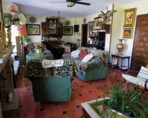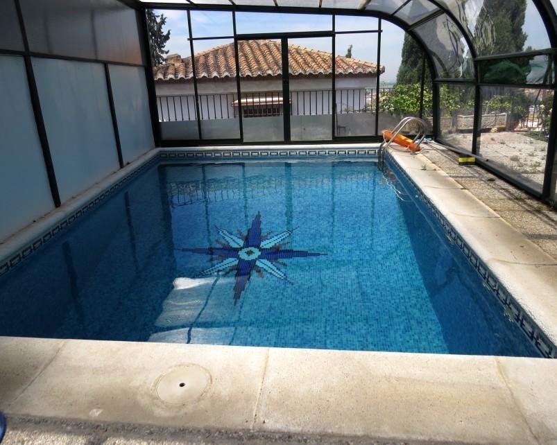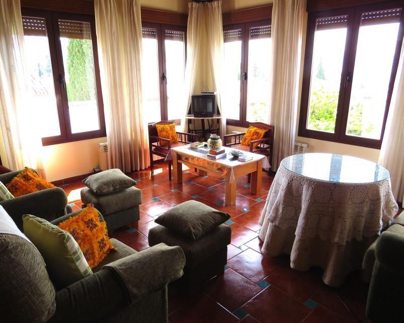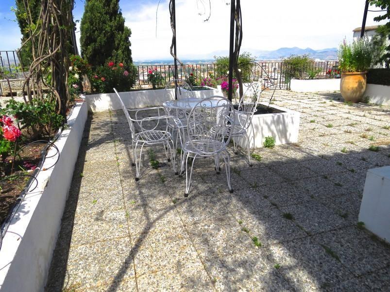 Very large carmen built to a very high standard in excellent position with views over the Vega and of the Alhambra, set in a lush patio garden with covered swimming pool. The accommodation comprises of seven double bedrooms, four bathrooms, a large light lounge/dining room with wood burner and French doors leading to the patio, a smaller television lounge, kitchen, a first floor lounge with spectacular views, library/study with access to an extensive balcony and a laundry room. The gardens are planted with a variety of shrubs and climbers which provide excellent shade from the sun. There are several outside seating areas. From the patio there is access to the large three car garage situated below the house which can be accessed at all times without the need of a resident access pass. The interior is of a high standard with extensive built in wardrobes, terracotta floors, wooden windows with double glazing and air conditioning.