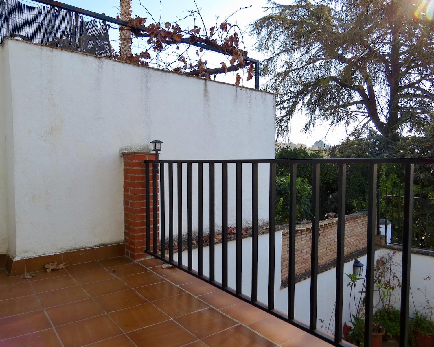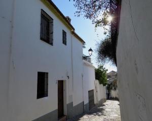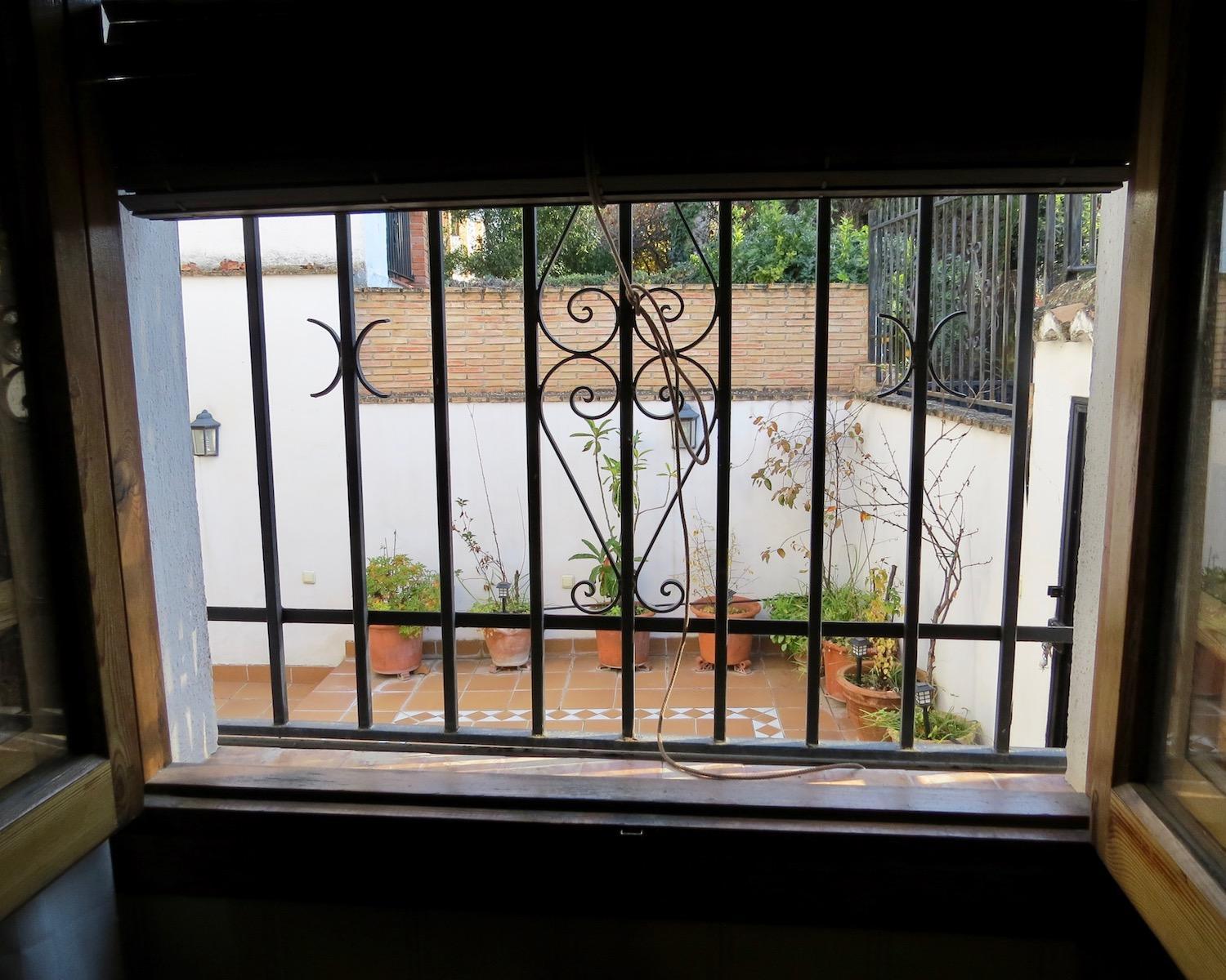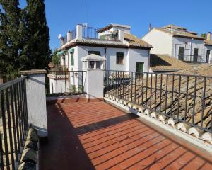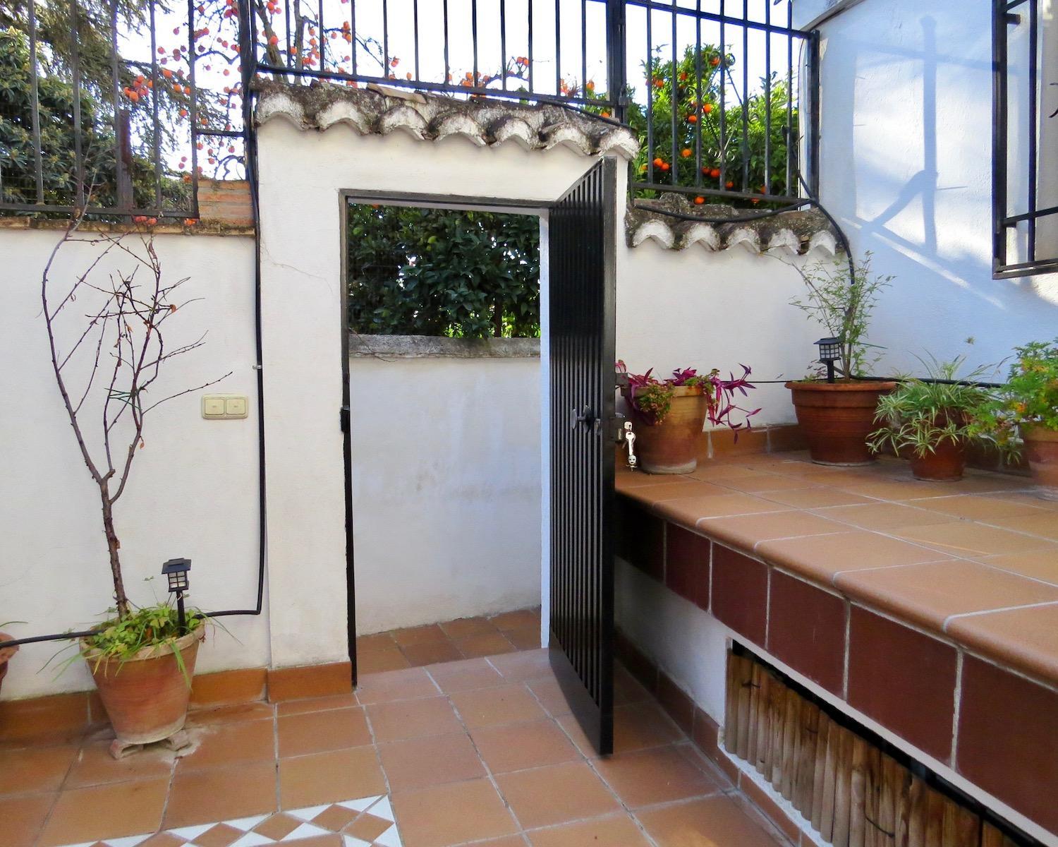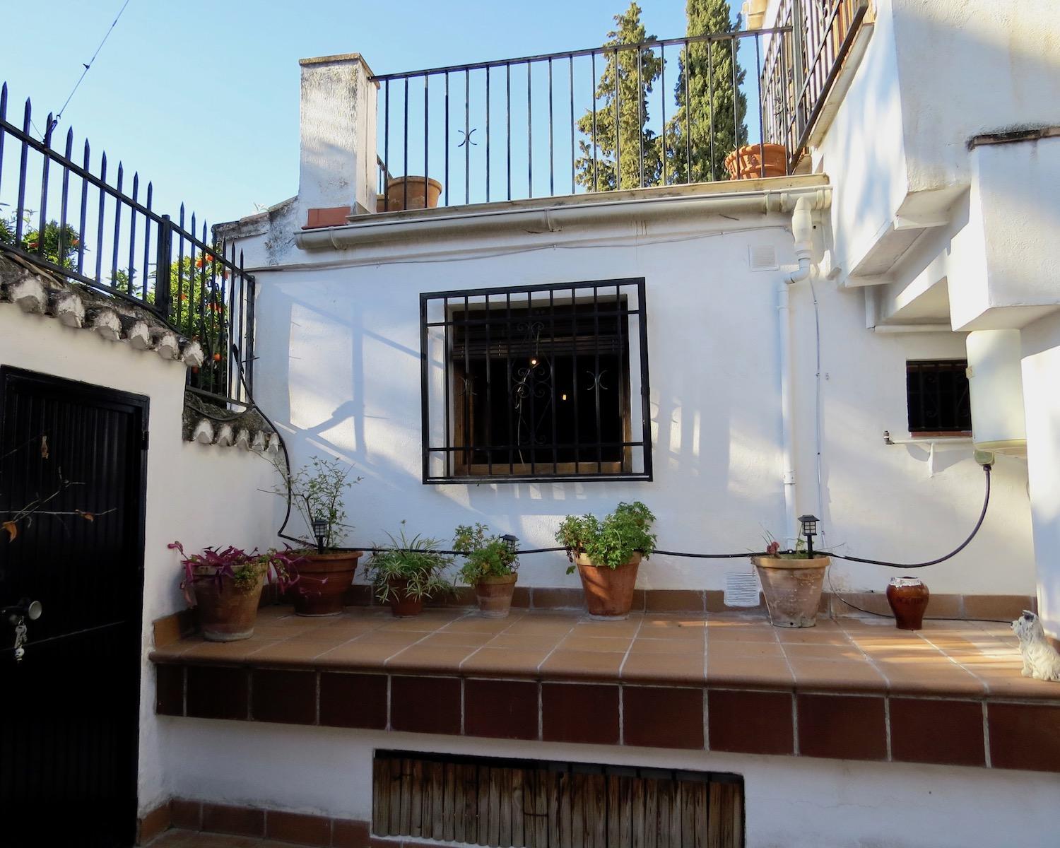 From the side entrance, there is access to the charming patio and doors through to the living room with fireplace and another set of French doors to the third part of the house. This third part was originally connected by means of a door through to the entrance hall from the main door and could be reconnected easily. Downstairs is a light open plan living room / dining room with kitchenette. A gorgeous, wooden spiral staircase leads up to a bedroom with fitted cupboards and an en suite bathroom. French doors allow for lots of natural light and access to a balcony with views of the patio and the Alhambra in the distance and stairs lead up once again to a third terrace with views of the Alhambra and the Albayzín.