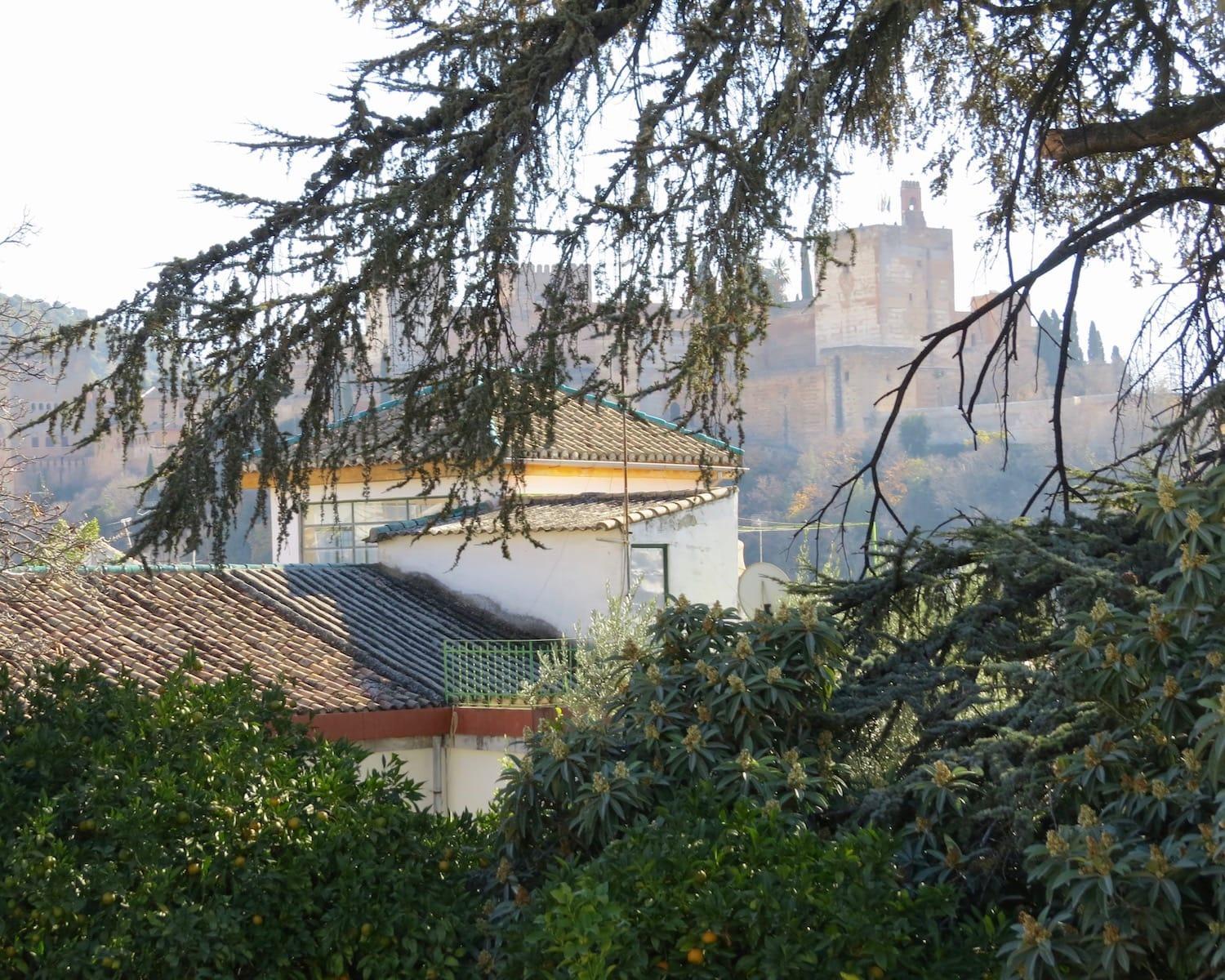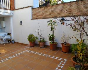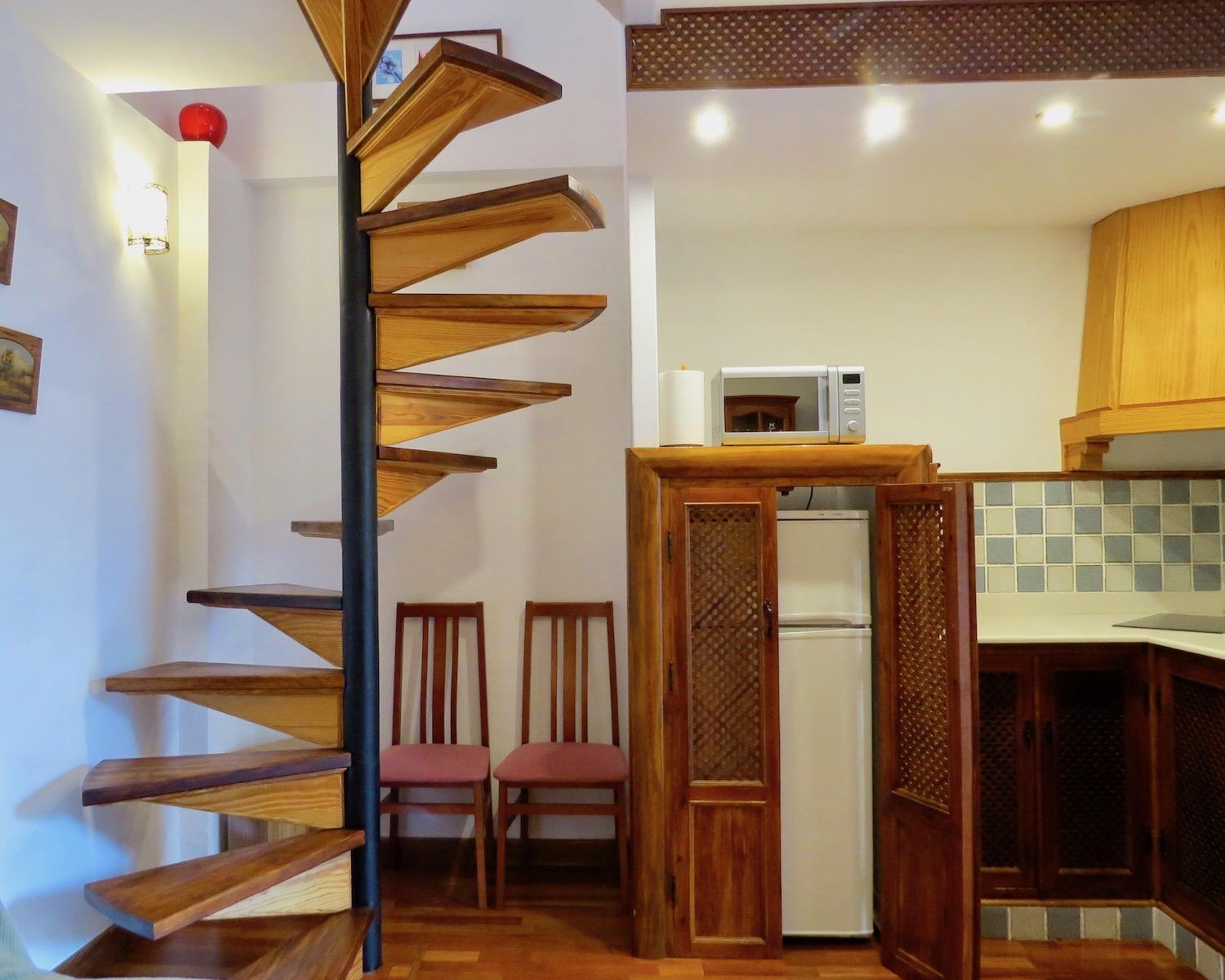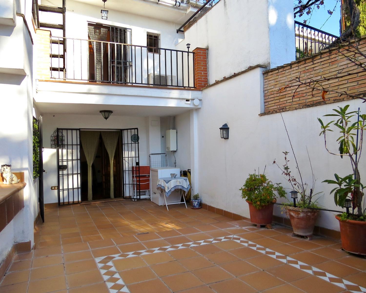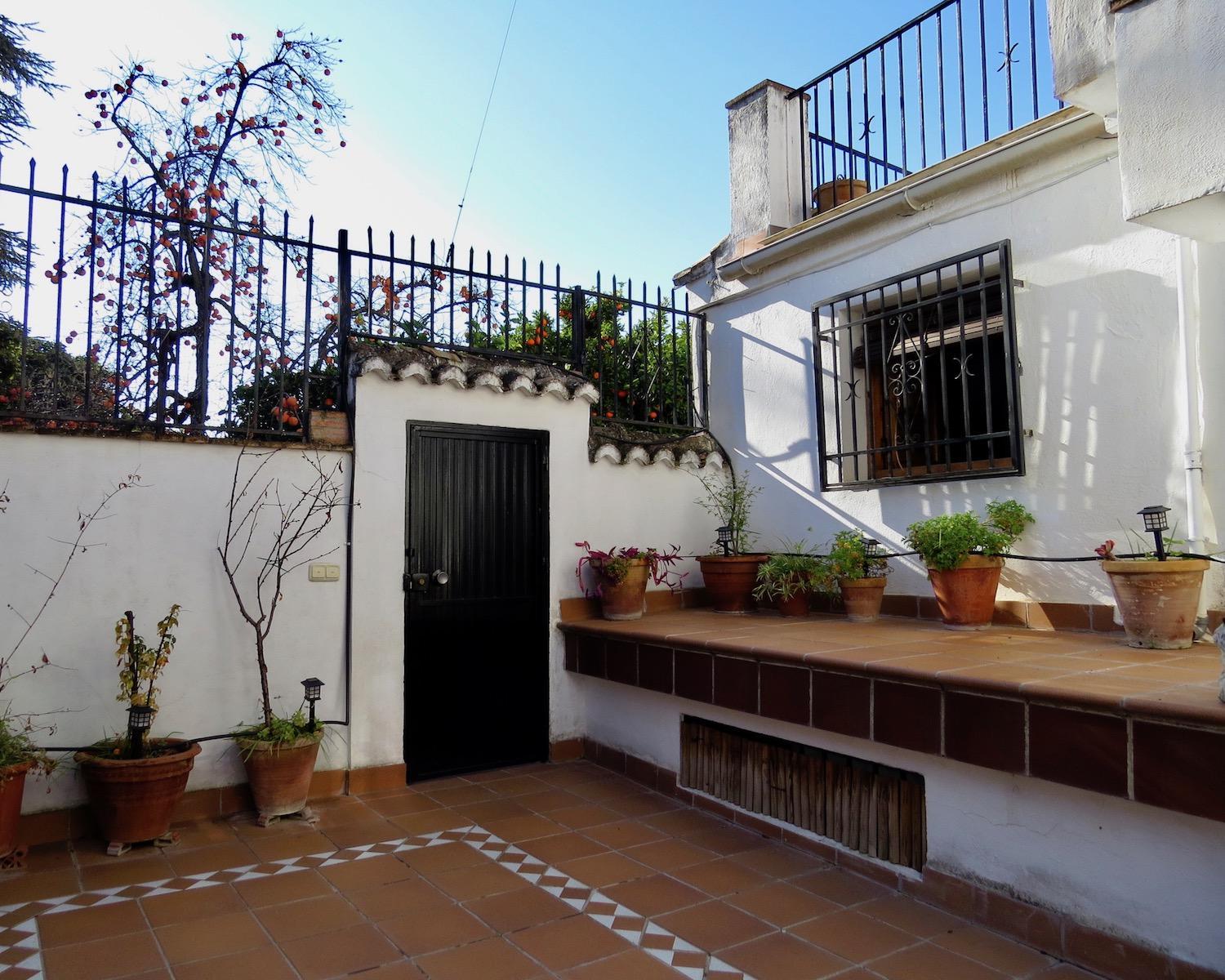 From the side entrance, there is access to the charming patio and doors through to the living room with fireplace and another set of French doors to the third part of the house. This third part was originally connected by means of a door through to the entrance hall from the main door and could be reconnected easily. Downstairs is a light open plan living room / dining room with kitchenette. A gorgeous, wooden spiral staircase leads up to a bedroom with fitted cupboards and an en suite bathroom. French doors allow for lots of natural light and access to a balcony with views of the patio and the Alhambra in the distance and stairs lead up once again to a third terrace with views of the Alhambra and the Albayzín.