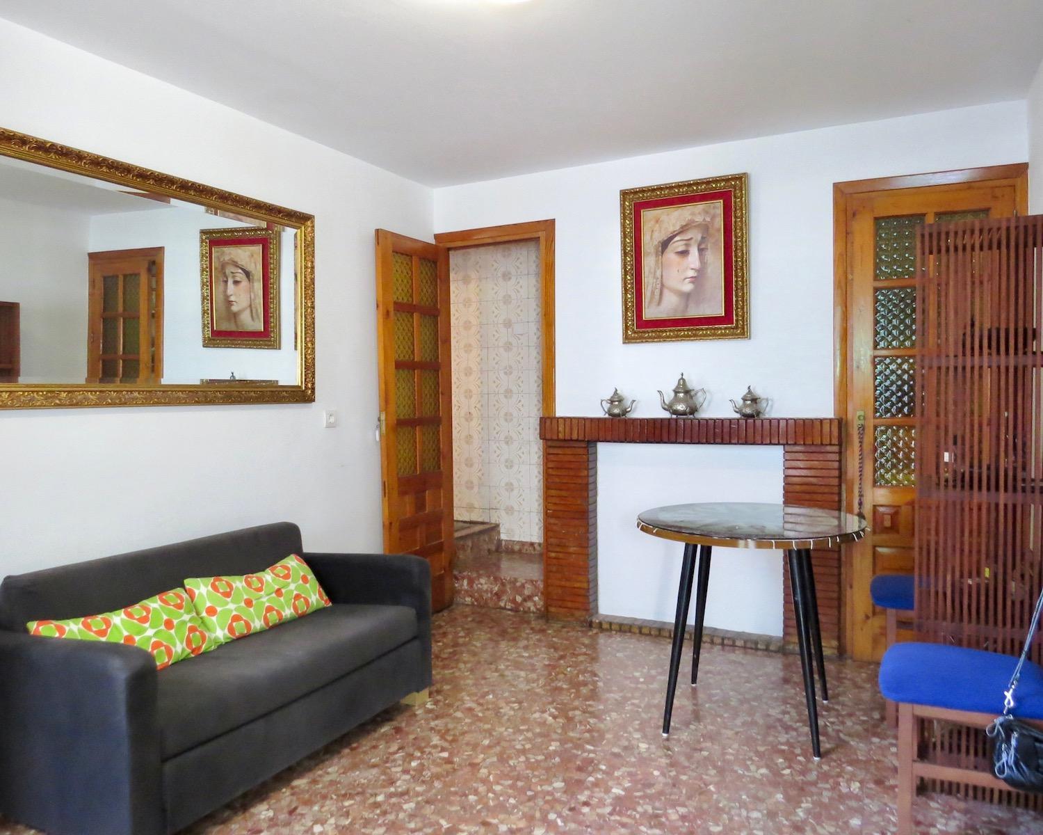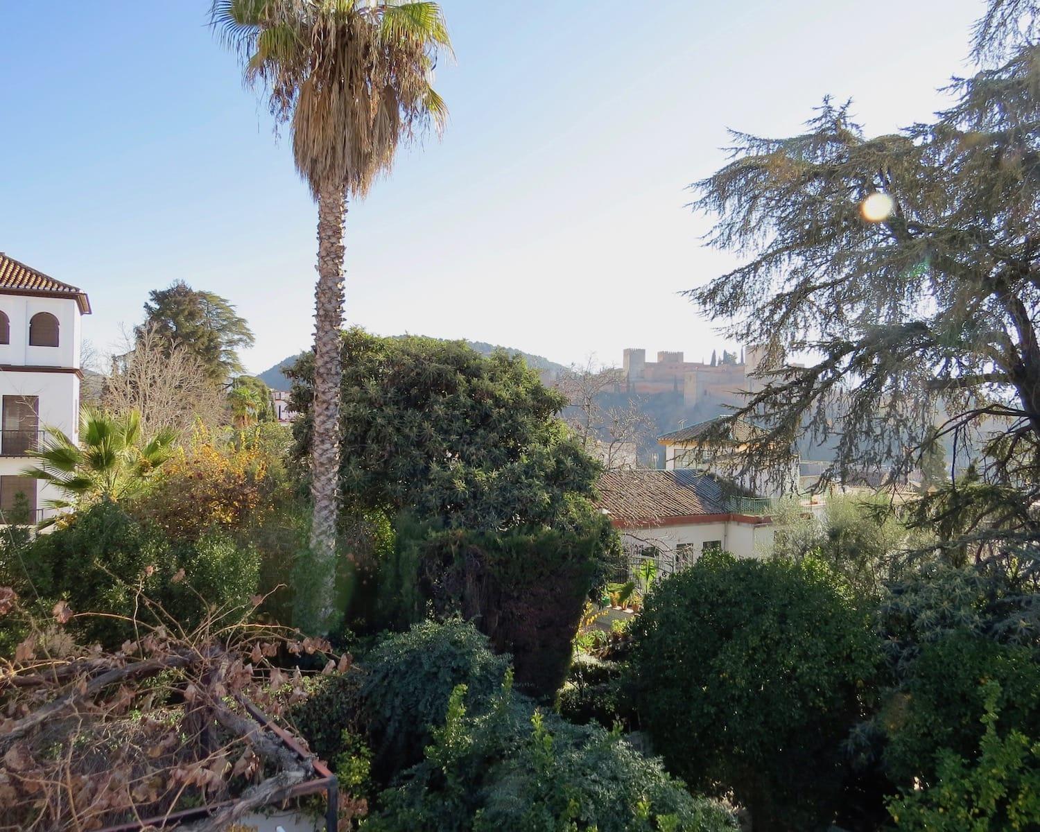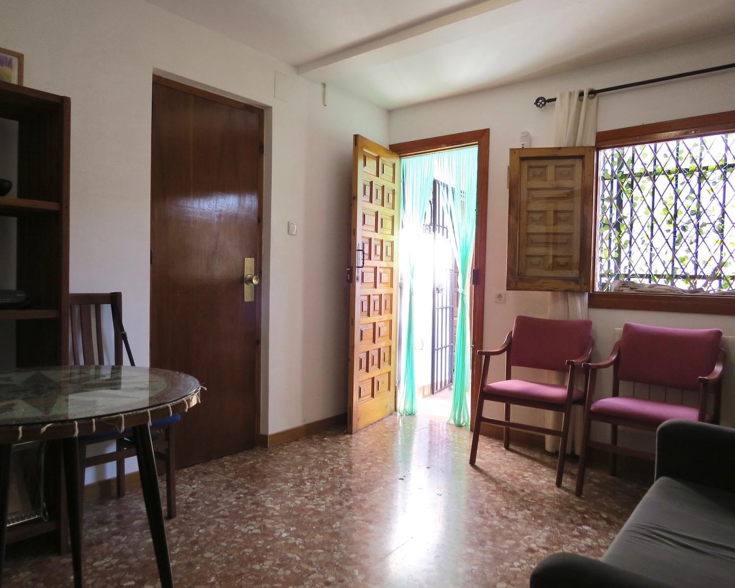 Coming in through the front door, there is a entrance hall that leads to one part of the house (also perfect as an independent apartment) on the left and another on the right. Through the left door there is a spacious entrance hall / living room / study, from which stairs lead up to a large, light bedroom with fitted wardrobe, a family bathroom with shower and a spacious open plan living room, dining room and kitchenette with lots of windows and natural light, from which there is access to a large terrace with views of the Alhambra in the distance and the gardens and patio below. Used as a family home, this open plan space would also make an absolutely gorgeous main bedroom.