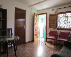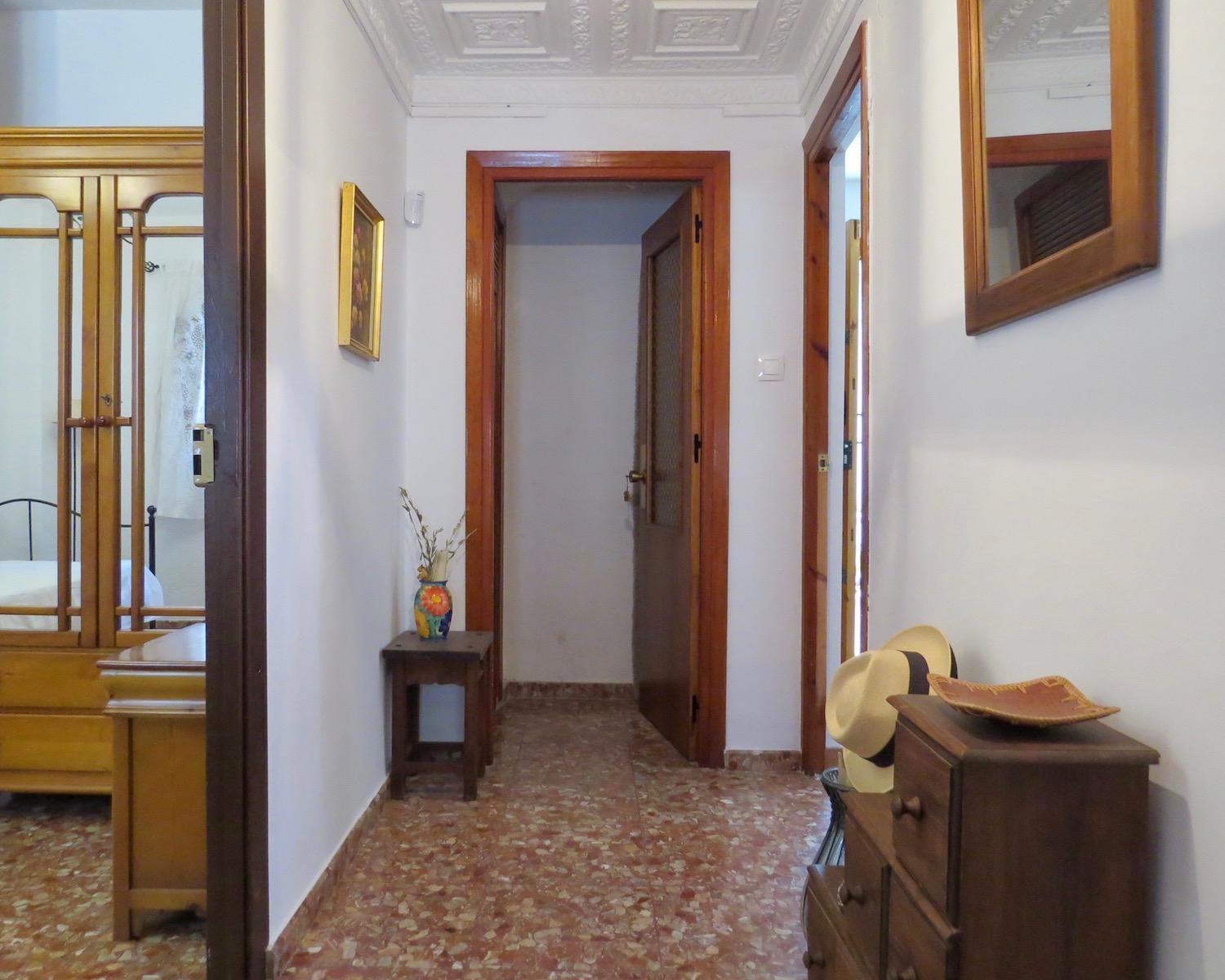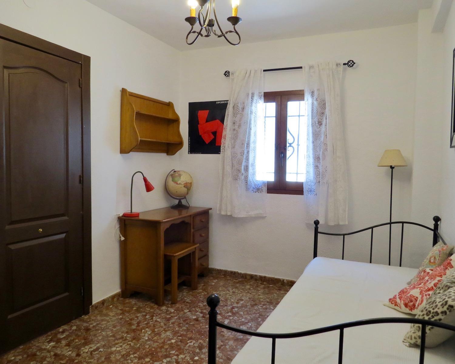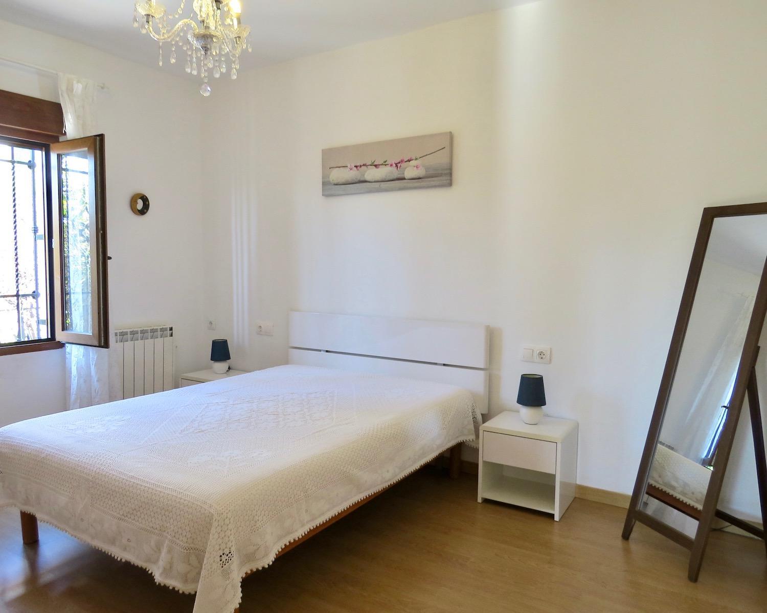 Coming in through the front door, there is a entrance hall that leads to one part of the house (also perfect as an independent apartment) on the left and another on the right. Through the left door there is a spacious entrance hall / living room / study, from which stairs lead up to a large, light bedroom with fitted wardrobe, a family bathroom with shower and a spacious open plan living room, dining room and kitchenette with lots of windows and natural light, from which there is access to a large terrace with views of the Alhambra in the distance and the gardens and patio below. Used as a family home, this open plan space would also make an absolutely gorgeous main bedroom.