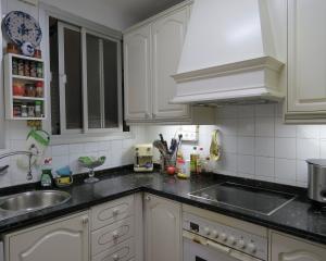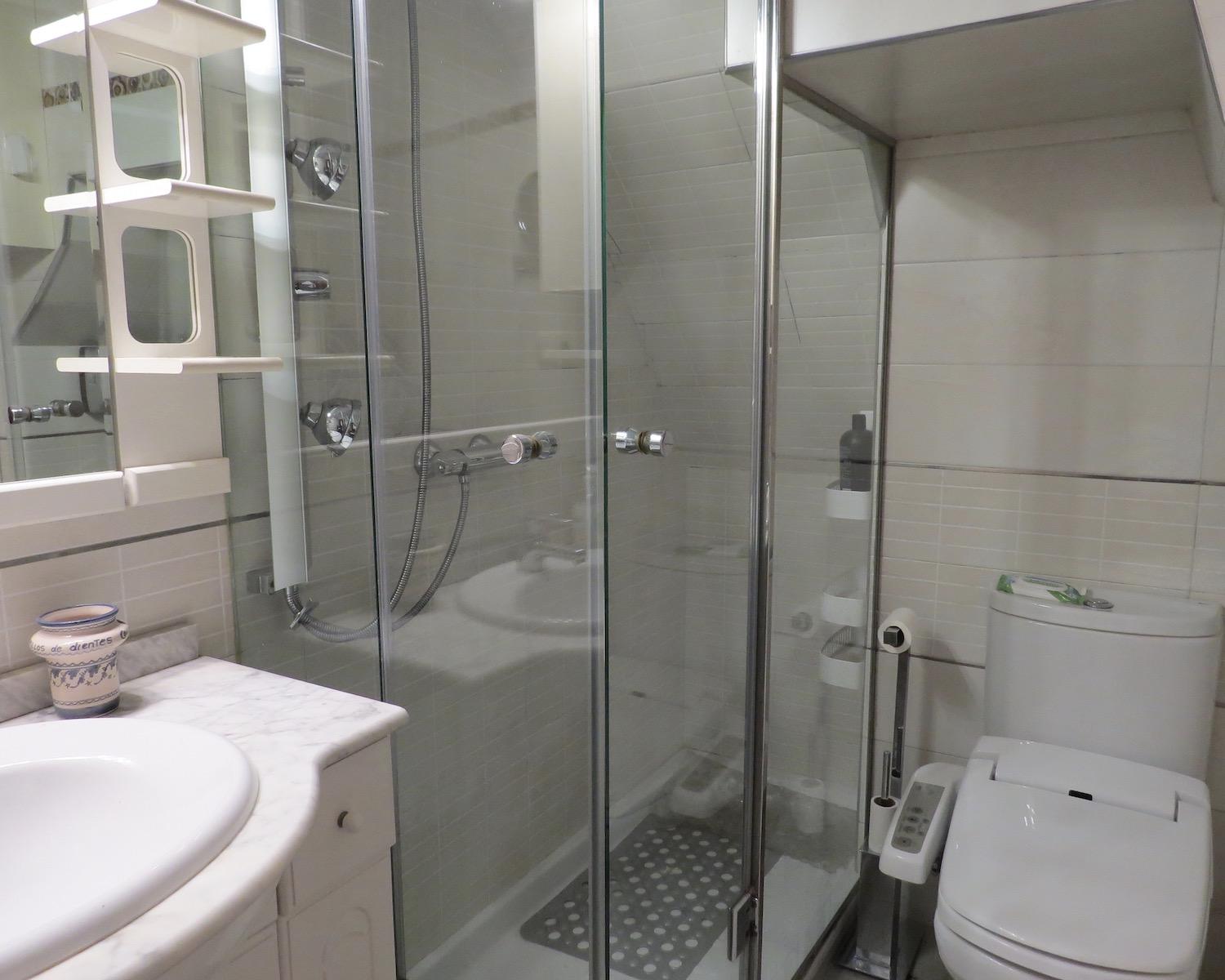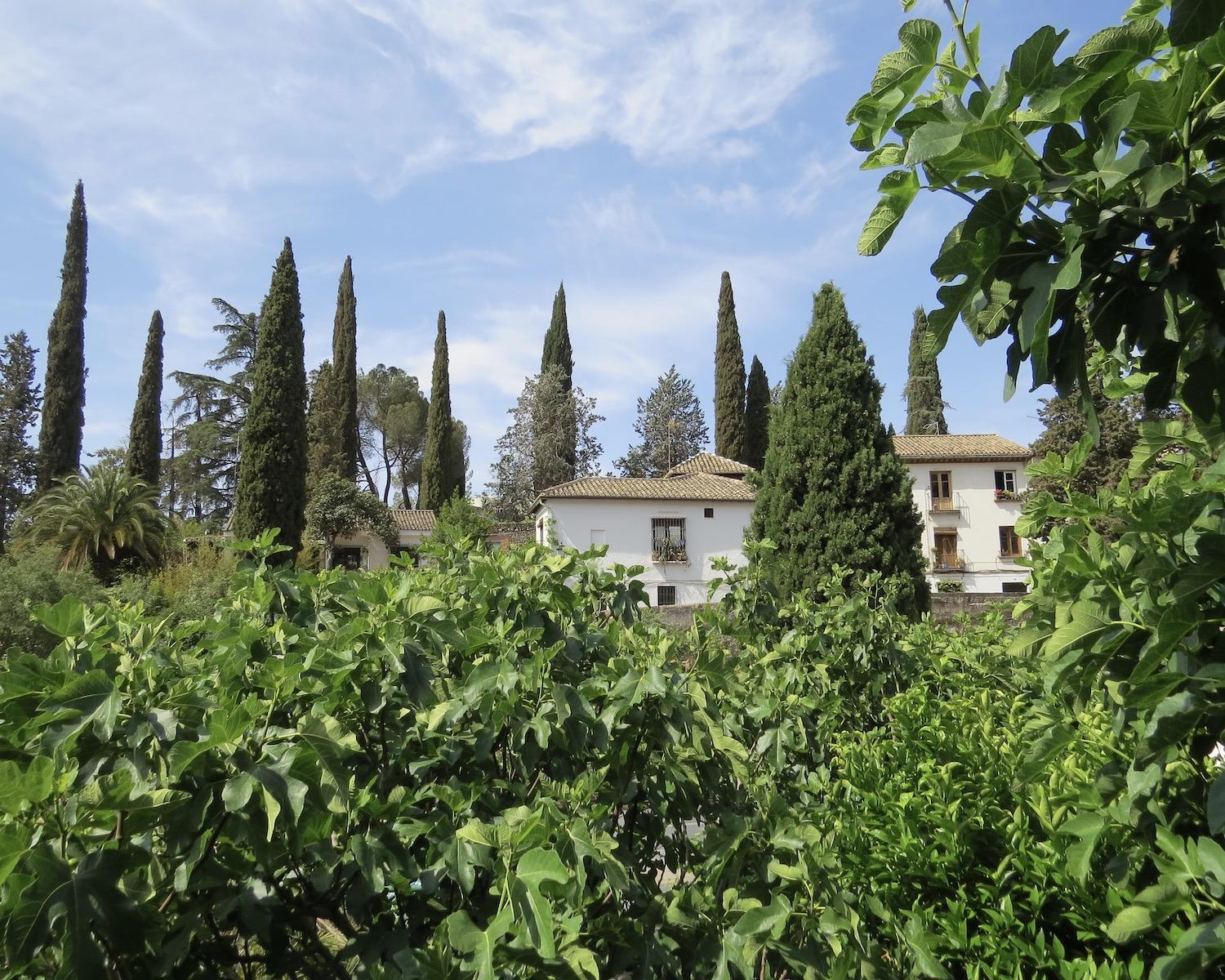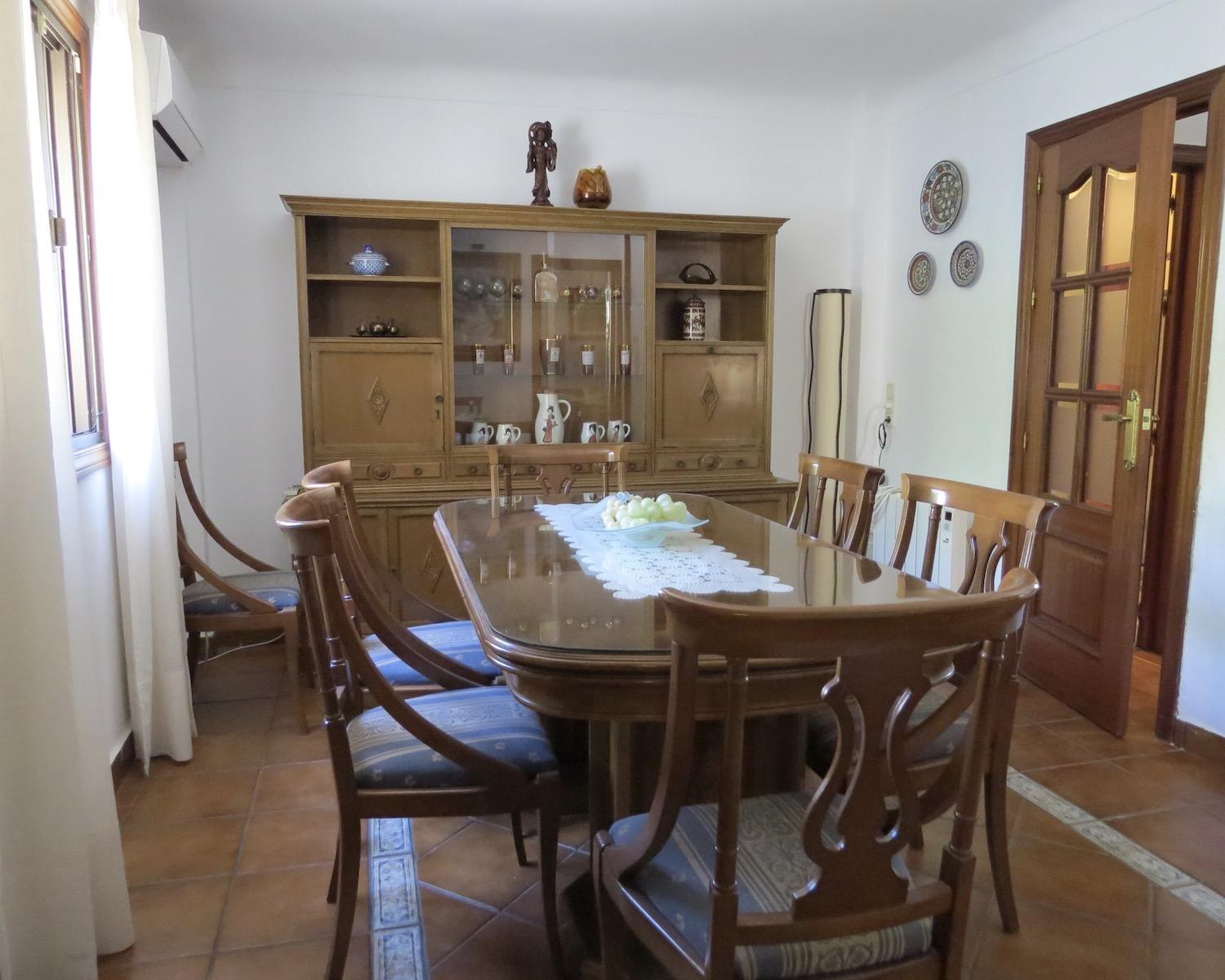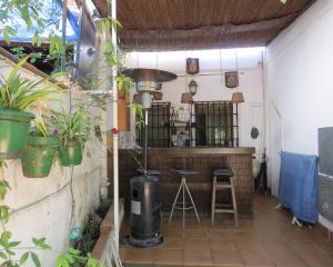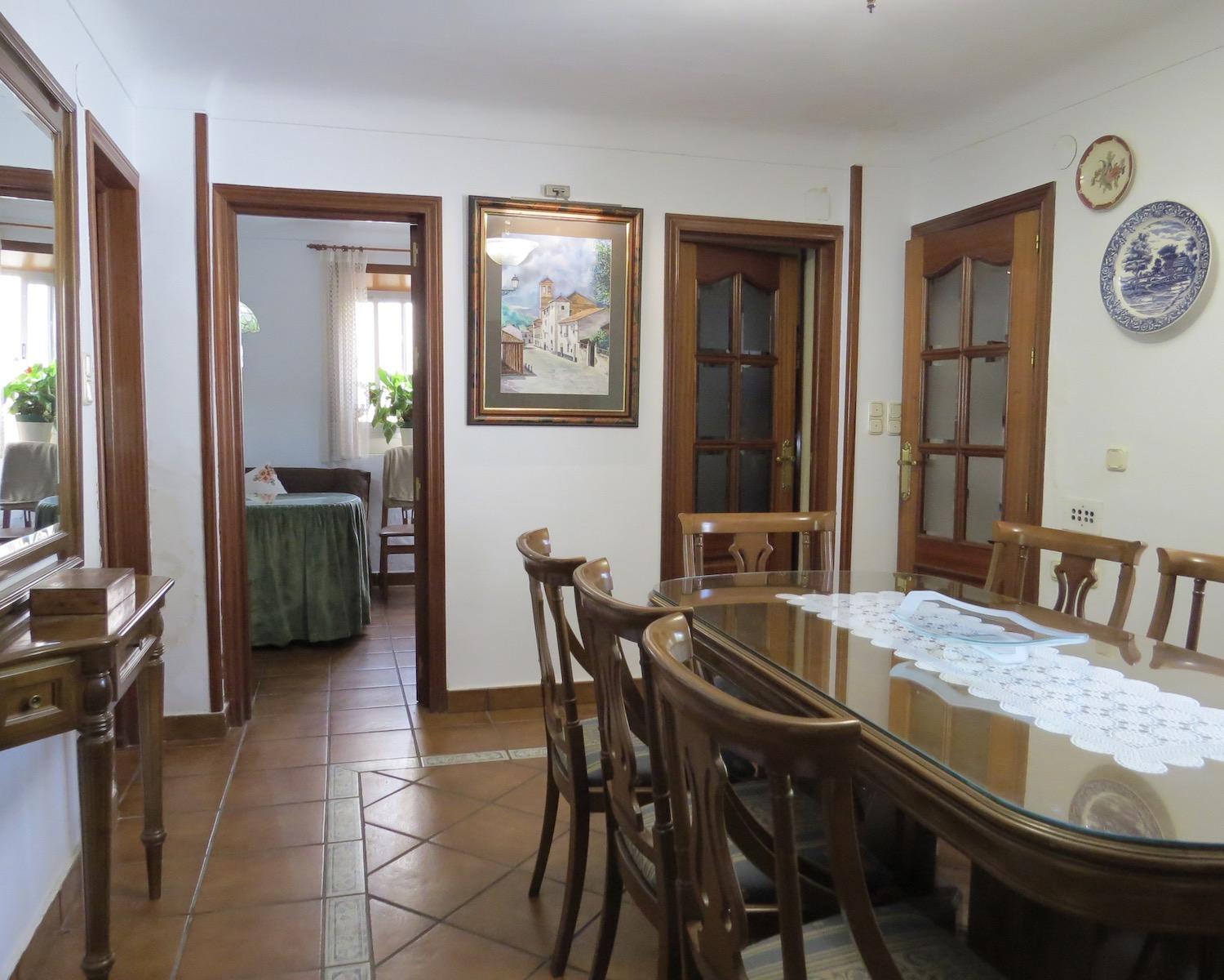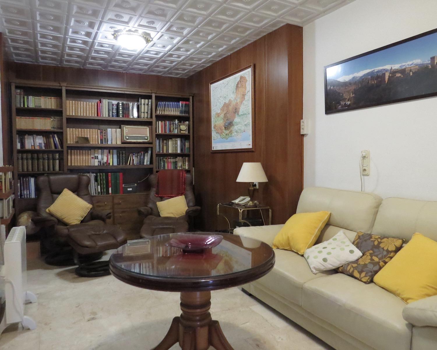 The property has two entrances, one below and one above, both with street access. The conveniently located bottom entrance leads in past the garage and up a flight of stairs to the gorgeous, ample and truly relaxing patio from which one can hear constant birdsong. The patio, partially cobblestoned in the typical Granadan style, has a very well-maintained and mature garden, with several rose bushes as well as three big fig trees, an orange tree, a loquat tree and a grapevine that provide excellent shade in summer and shed their leaves in winter, allowing the light and warmth to flood in. The patio has several seating areas including an outside, covered bar area with a storage space.