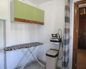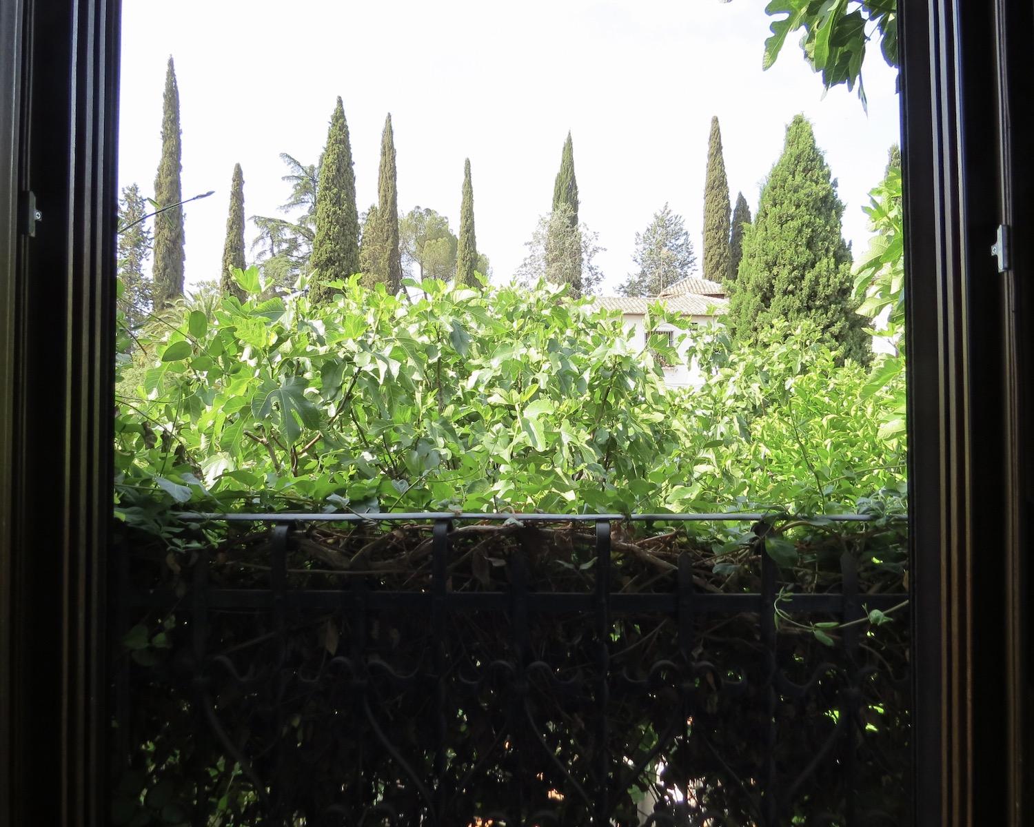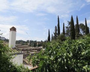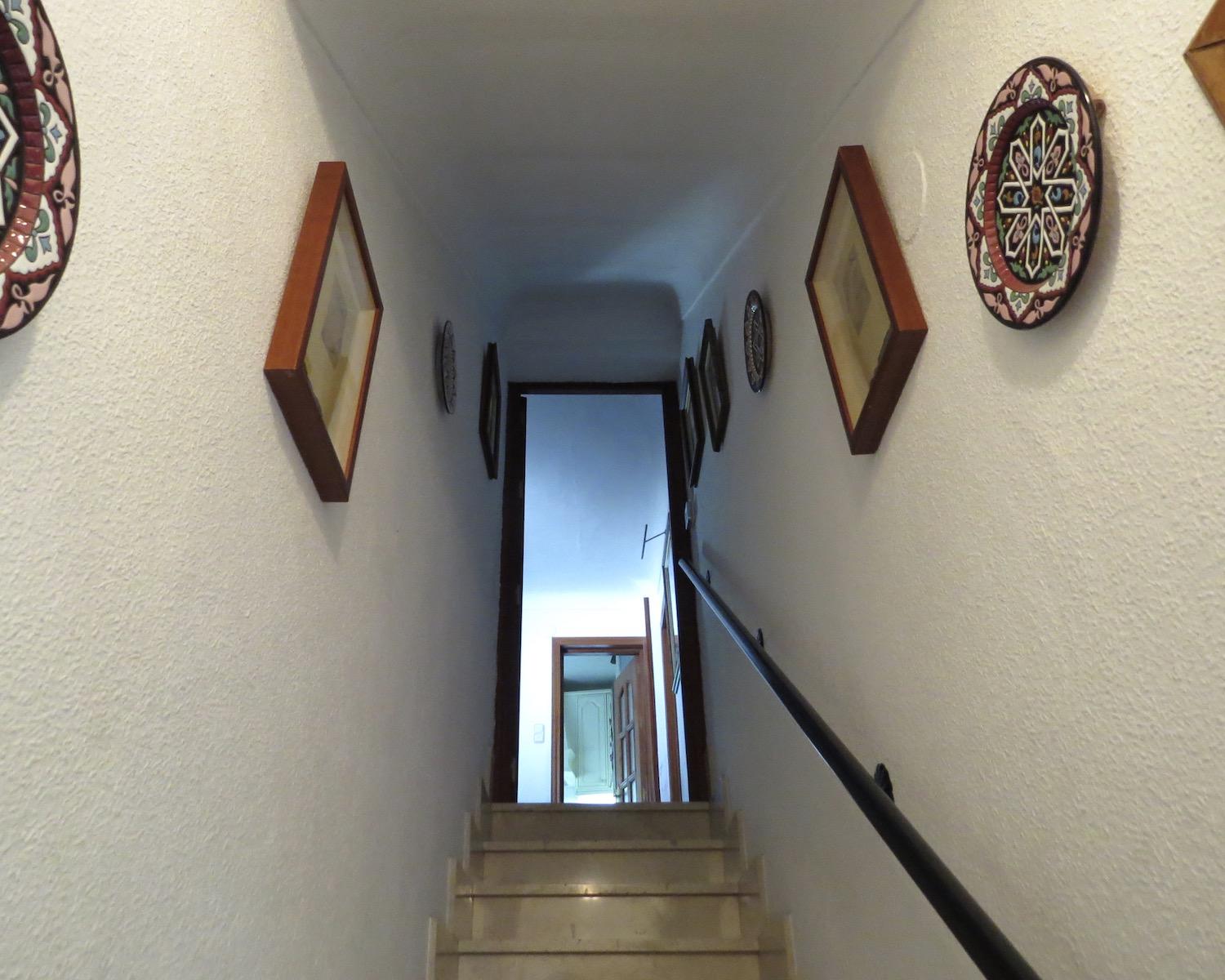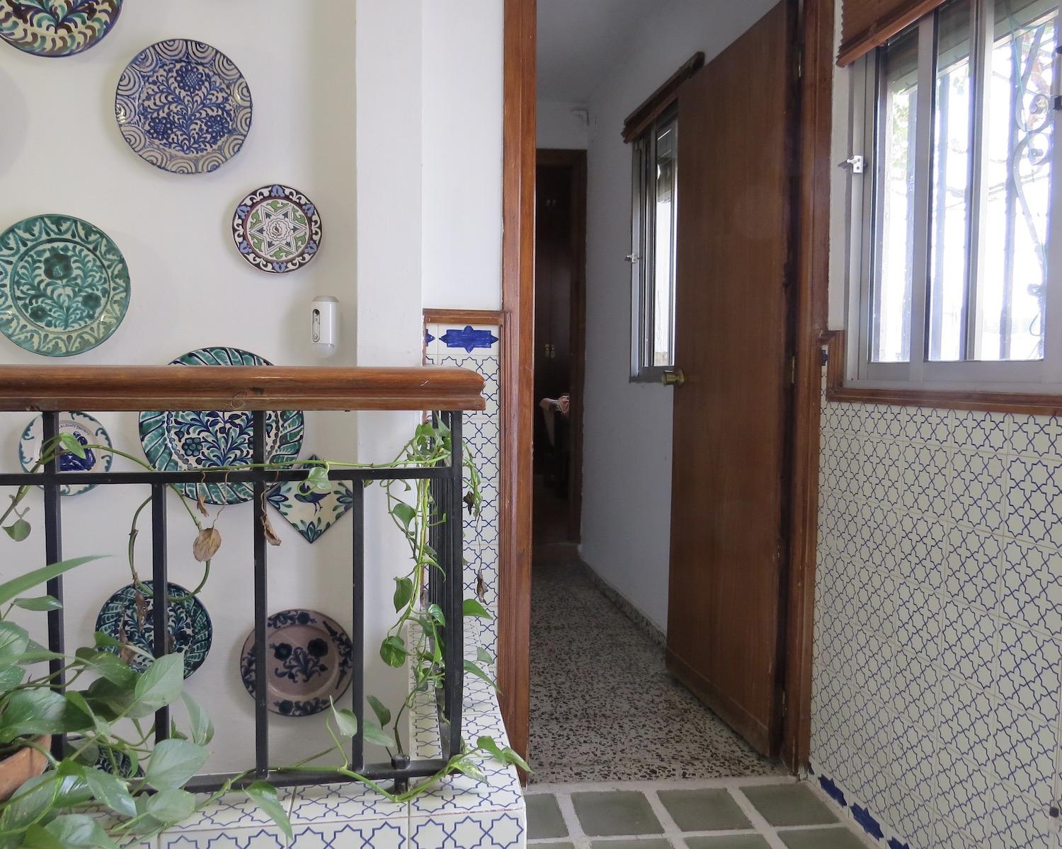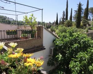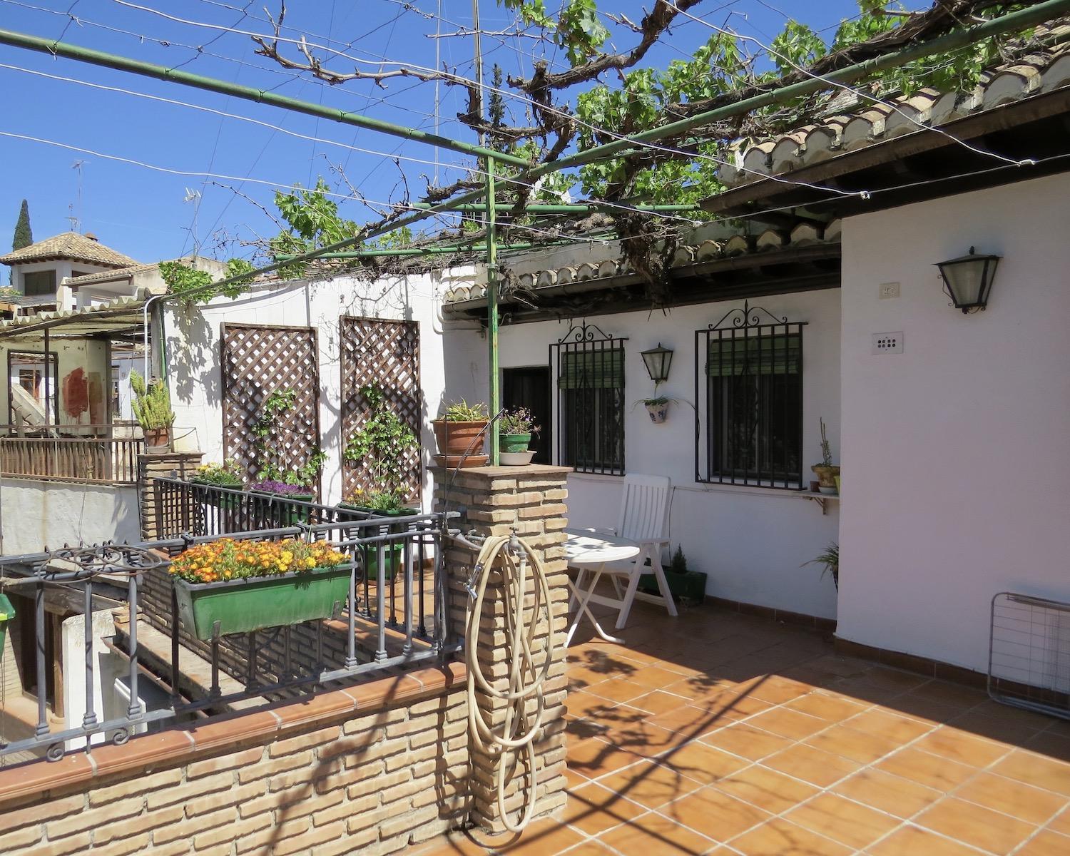 On the stairs leading up to the second floor is the upper entrance. Continuing up to the second floor, a door leads out to the spacious, sunny terrace, complete with a grapevine, lemon tree and various creeping ivy plants trained up wooden trellises. The terrace has stunning views of the Alhambra and Generalife and is a great place for winter months while the patio below offers cool shade for summer. The second floor also has a third bedroom with fitted wardrobes and a large utility room that could be converted into a bathroom if desired.