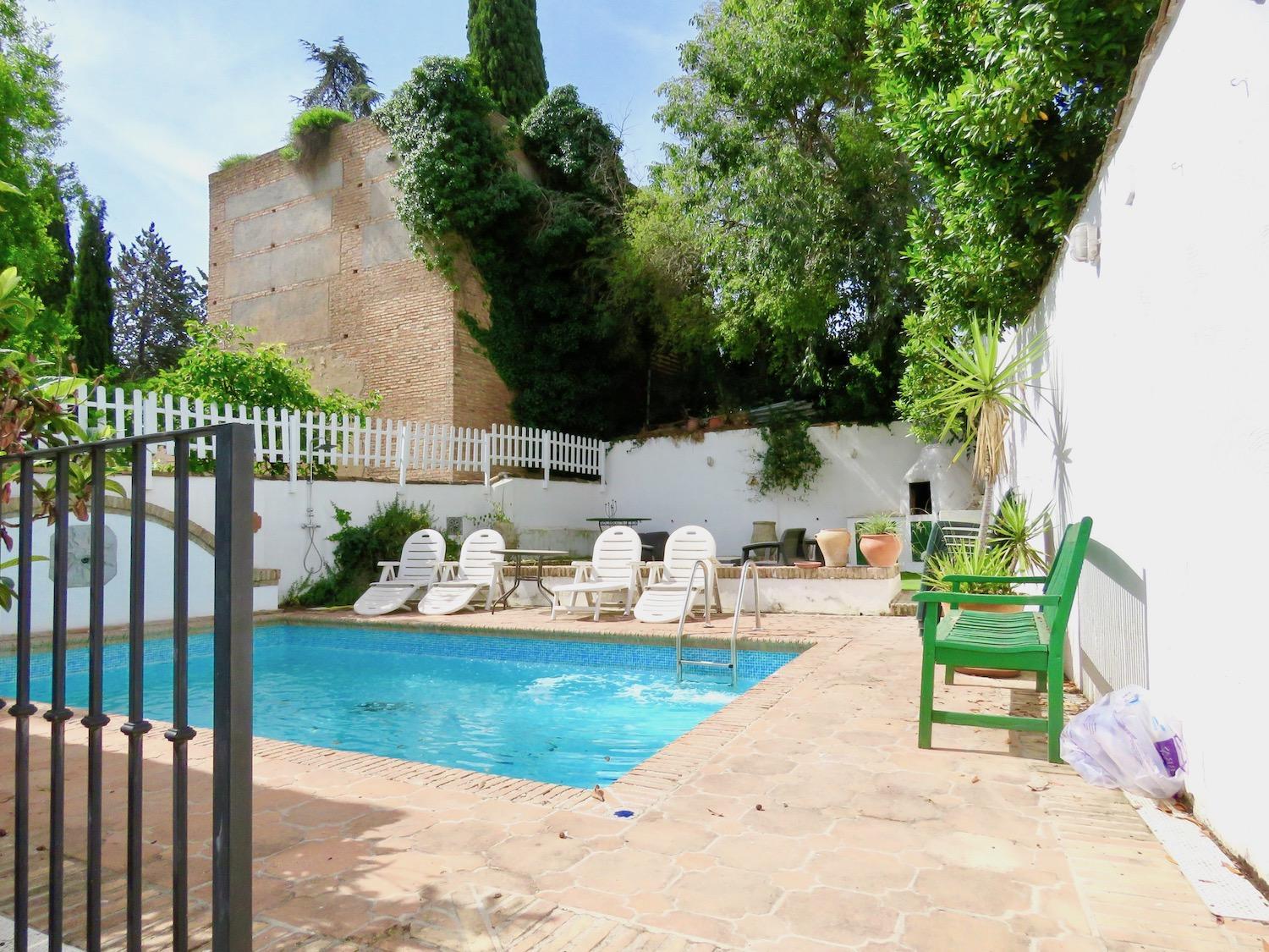 Spacious and light town house in the Albayzin with swimming pool, two patios and car access. The property does not have its own garage, although there are available parking spaces just in front.